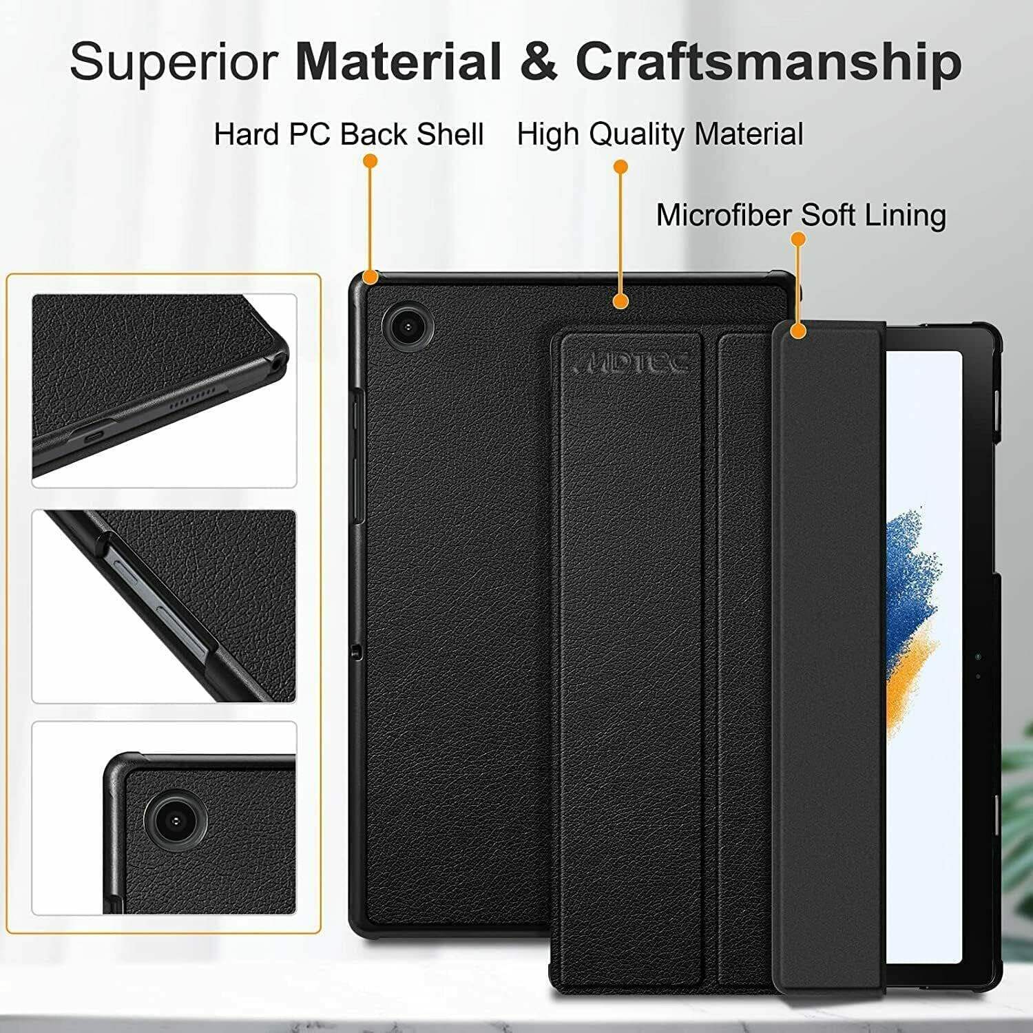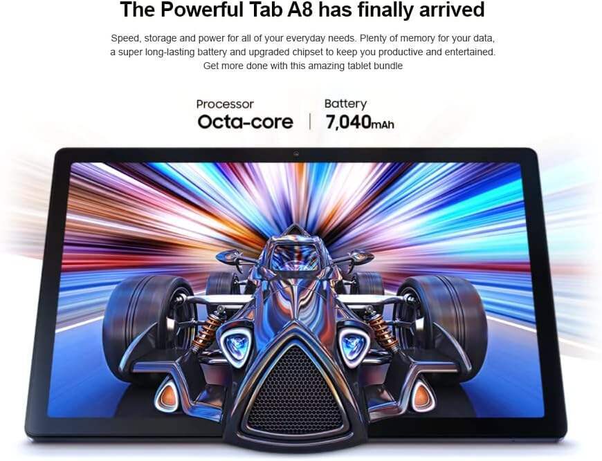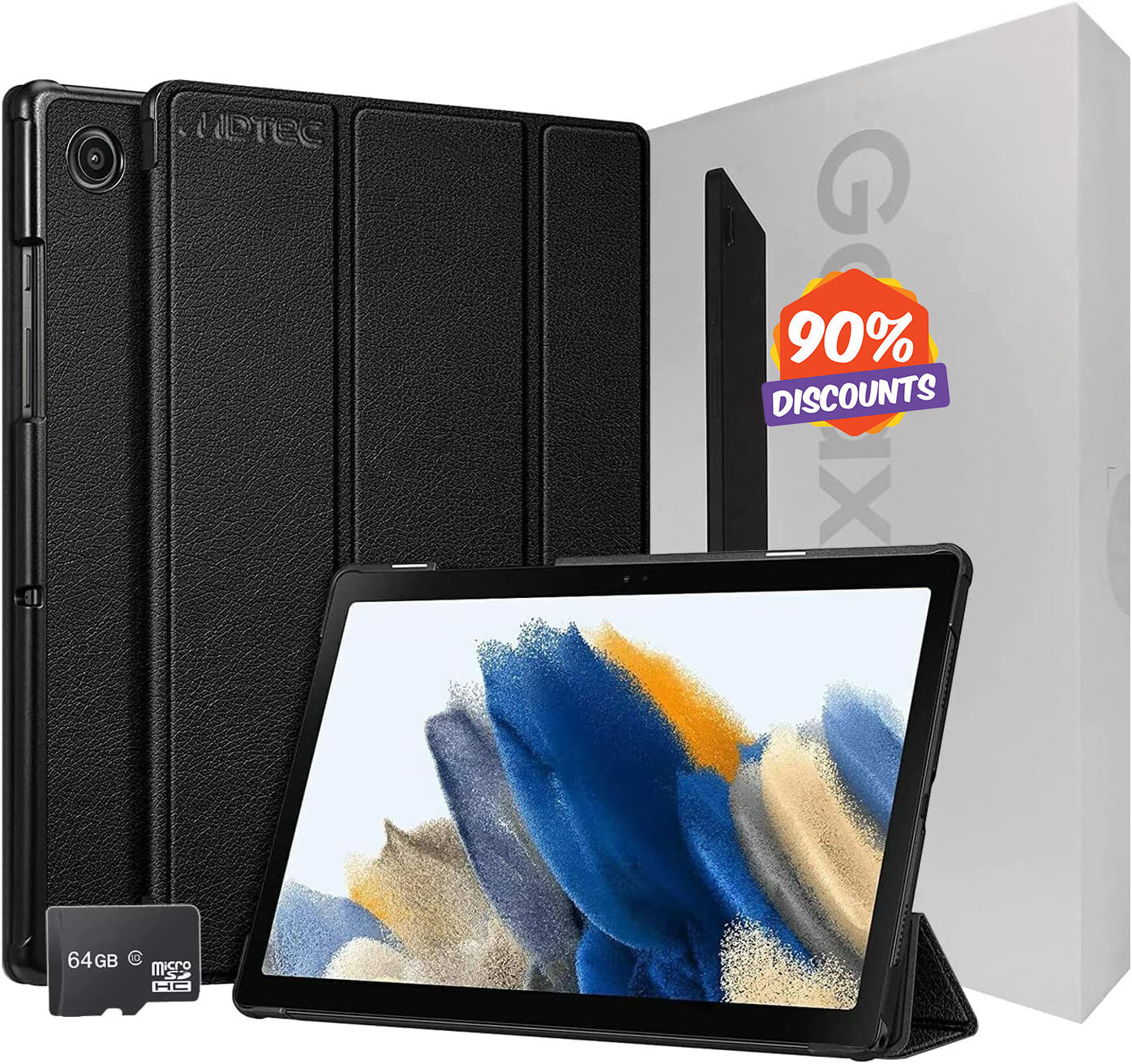 • BUNDLED ACCESSORIES: Save time and money searching for accessories. Get everything you need for your new right here – a specially designed ultra-slim, MDTec Hard Back Shell Tri-Fold Stand Cover Case with precise cutouts for full access to all controls and buttons. A 64GB Class 10 Micro SDHC Memory Card is also included to expand the memory of your new Galaxy Tab A8 device!