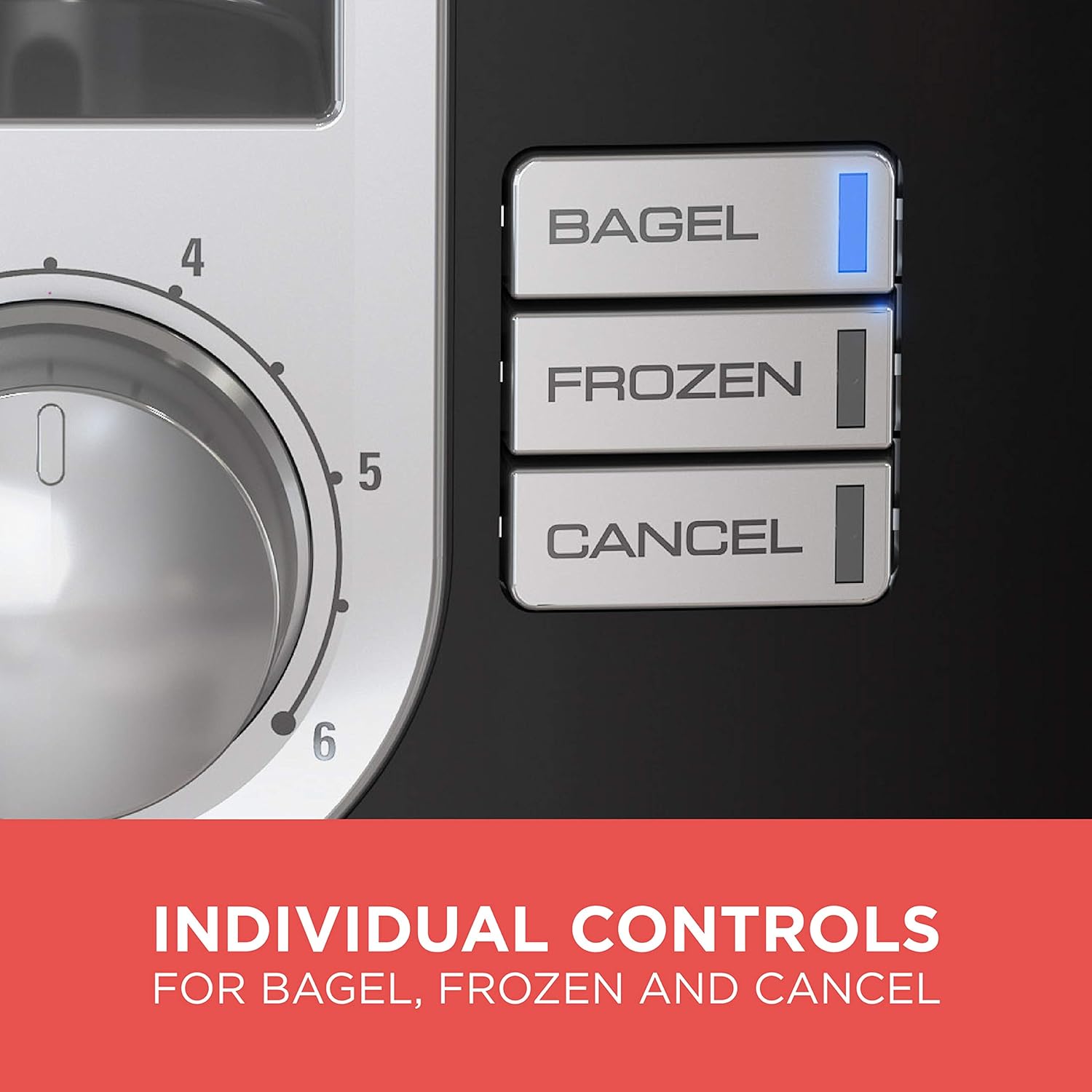 Put the perfect crisp on your morning bagel using the push-button bagel function. Also controls for frozen items and to end toasting.