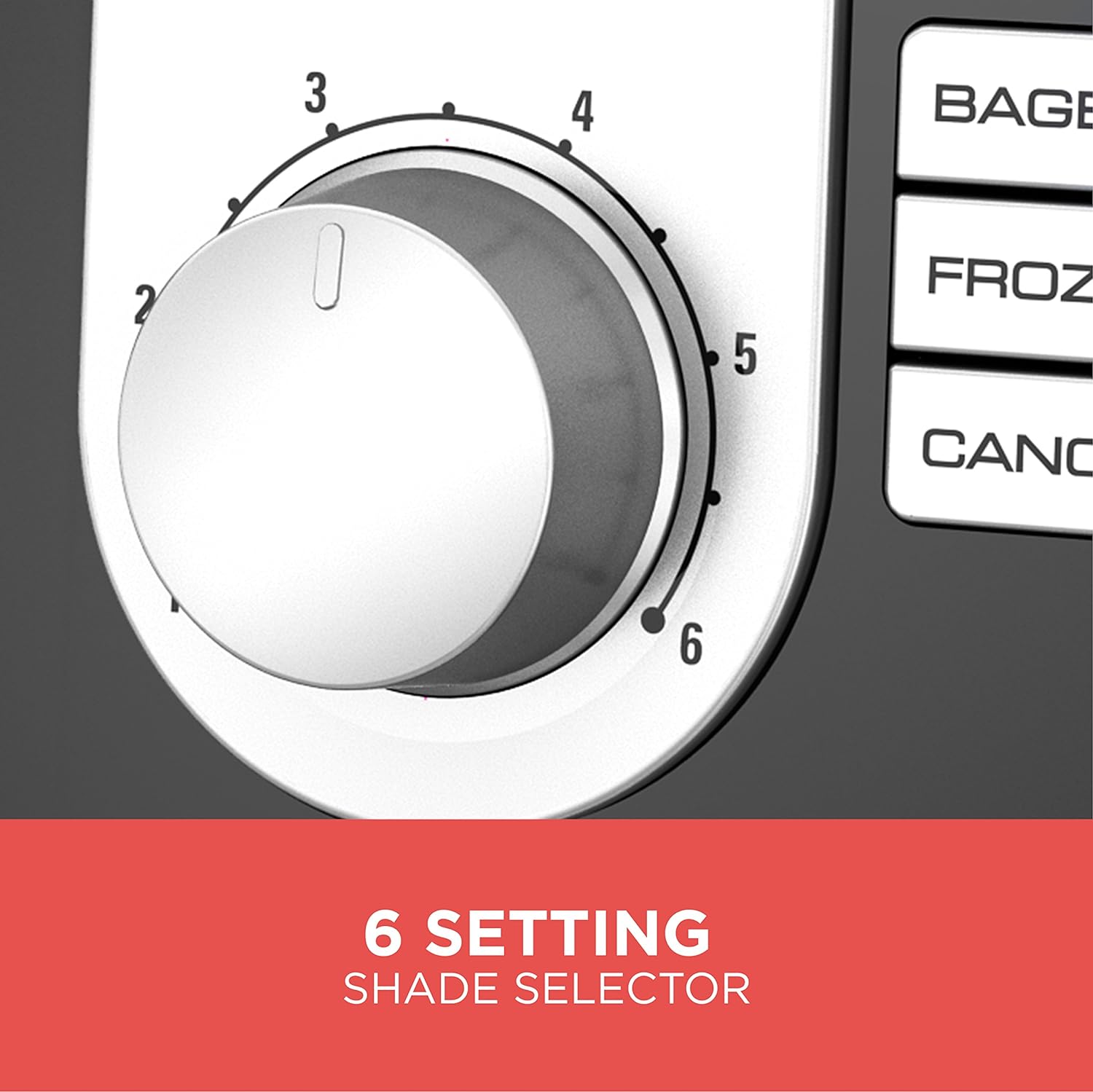 Breakfast just got easier. The BLACK+DECKER 2-Slice Toaster is the perfect way to start your day, with six timed shade settings and special functions for bagels and frozen items. Plus, the extra-wide toasting slots accommodate bagels and thick cuts of bread, and the extra lift lever puts hot toast safely in reach. Do breakfast better with the BLACK+DECKER 2-Slice Toaster.