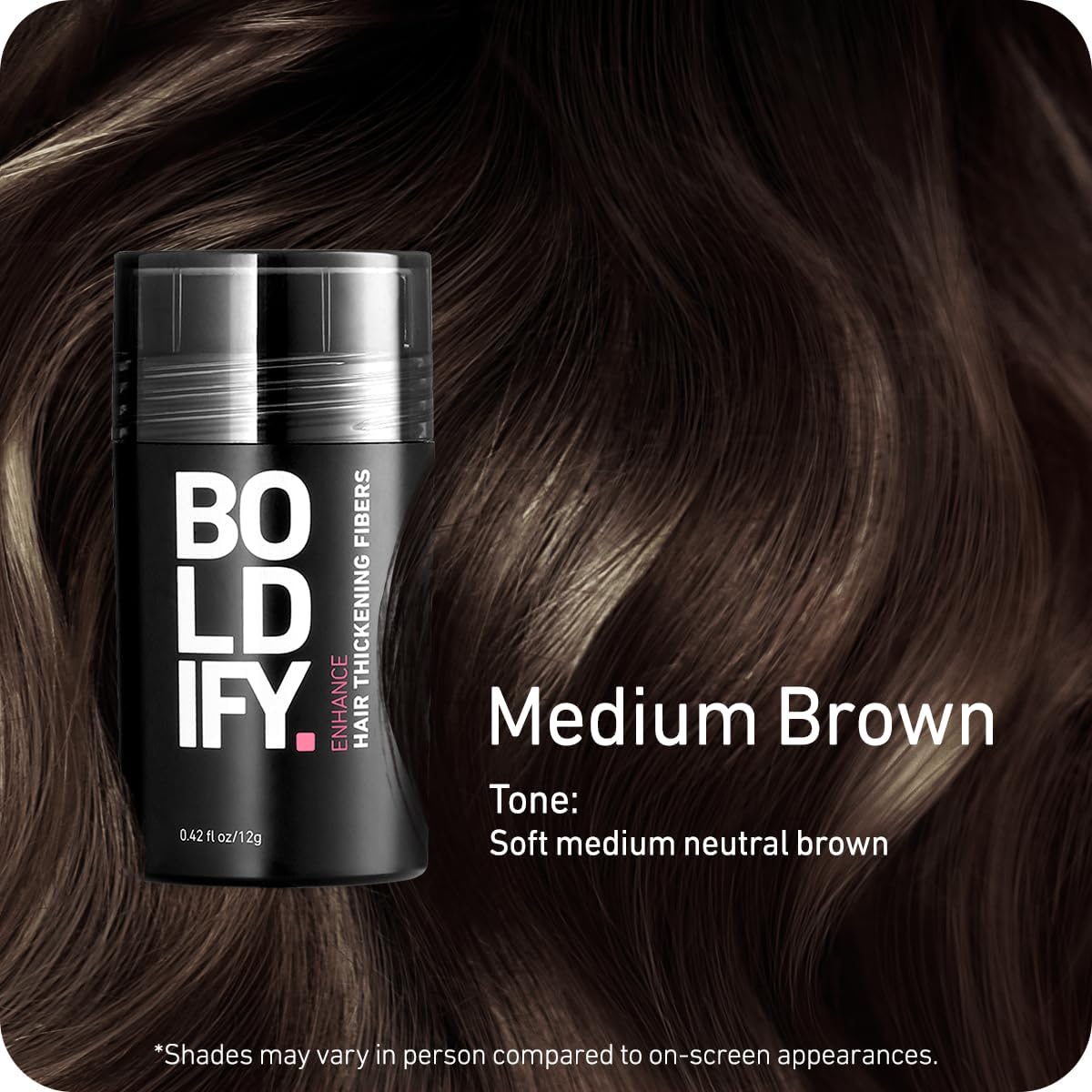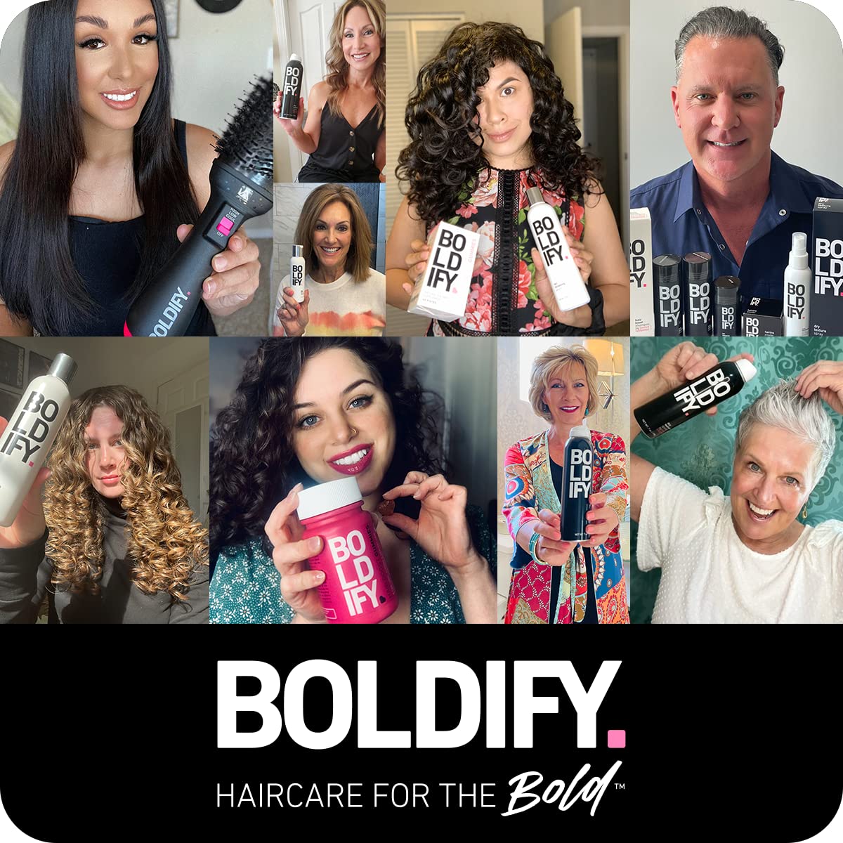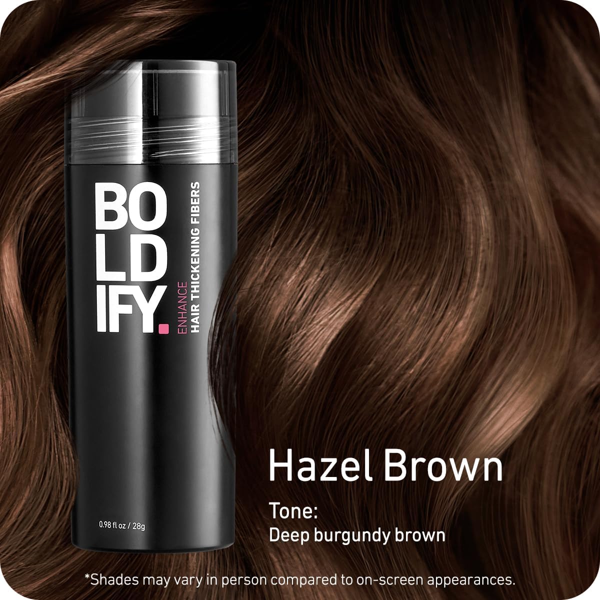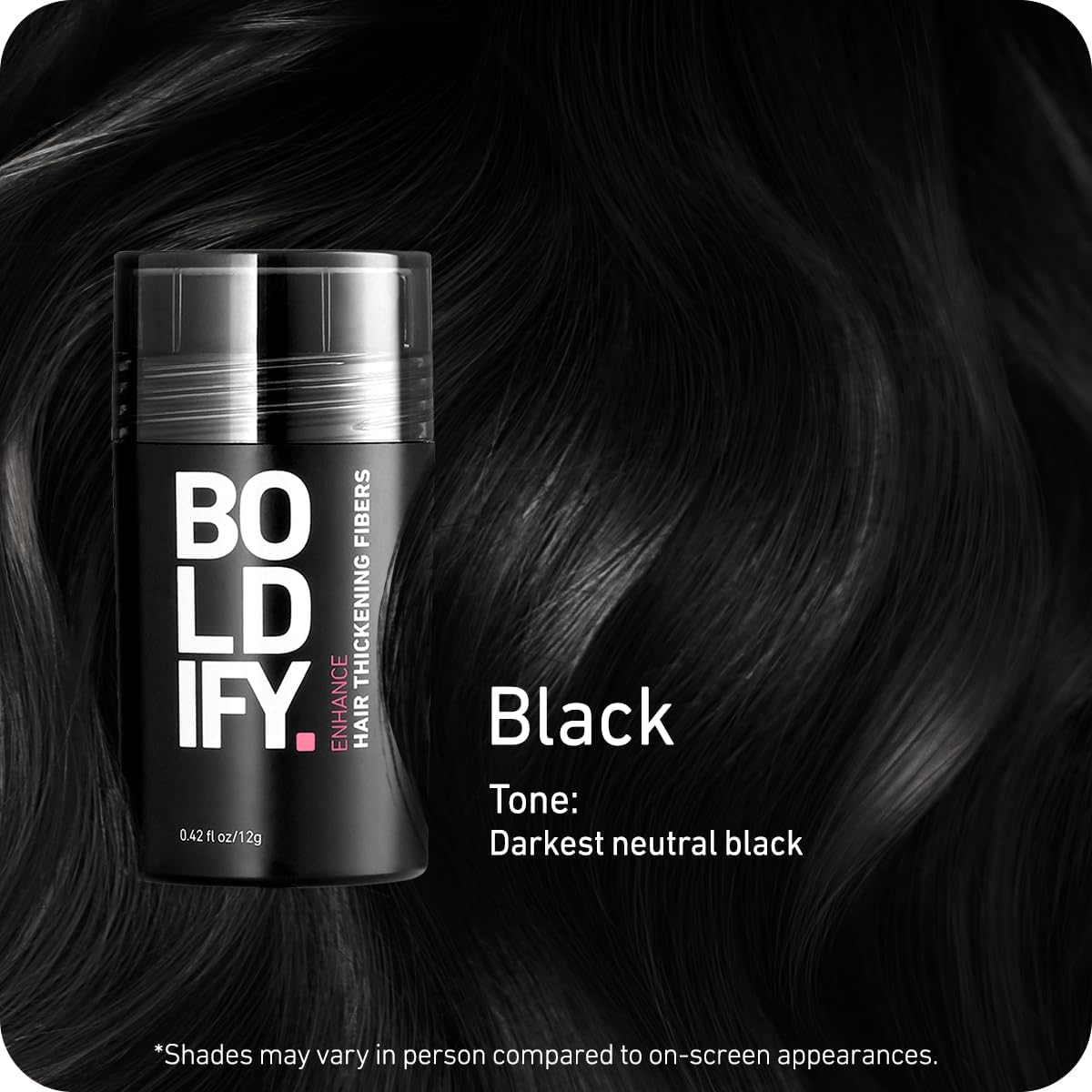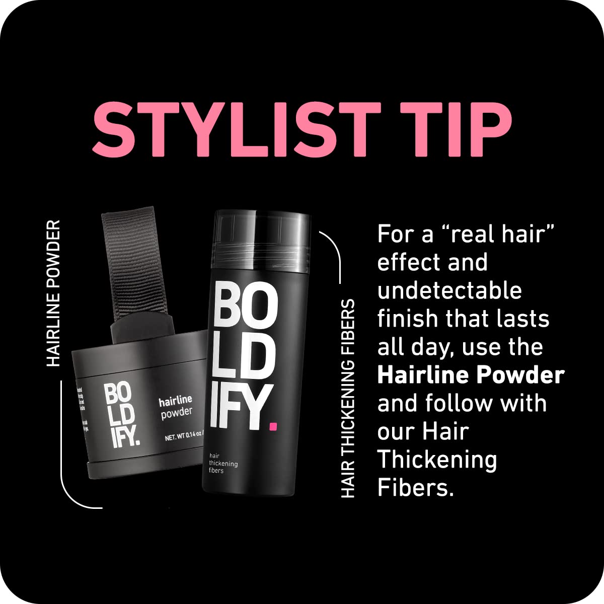 - INSTANTLY FILL IN THINNING HAIR WITH UNDETECTABLE FINISH: Made from just 3 natural ingredients, Boldify Hair Thickening Fibers bond seamlessly to existing hair for a real hair effect that's invisible to the eye. Perfect for enhancing the crown and partline, our fibers are designed with follicle-mimicking molecules for the most natural blend. Use Boldify Hairline Powder for areas with less hair.