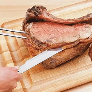 - [Unique Design]: The 16’’ long-handle grill tools with solid elongated handles allow you to reach every corner of the grill while keeping a safe distance from the flame or hot surface. Its heat-resistant stainless steel handles also coated a durable wood grain coating that won't fade, peel, or crack through extended field use and provide a additional comfortable non-slip grip.
