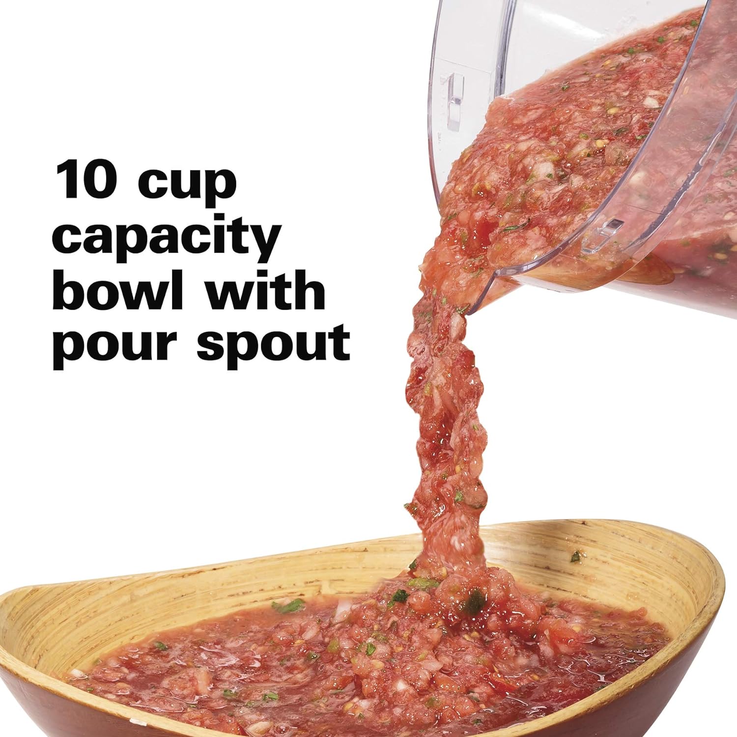 - 10 CUP BOWL CAPACITY: The generous 10 cup bowl fits large volumes of food all at once. The large feed chute saves you time by reducing the need to pre-cut food before processing or using as a vegetable chopper.