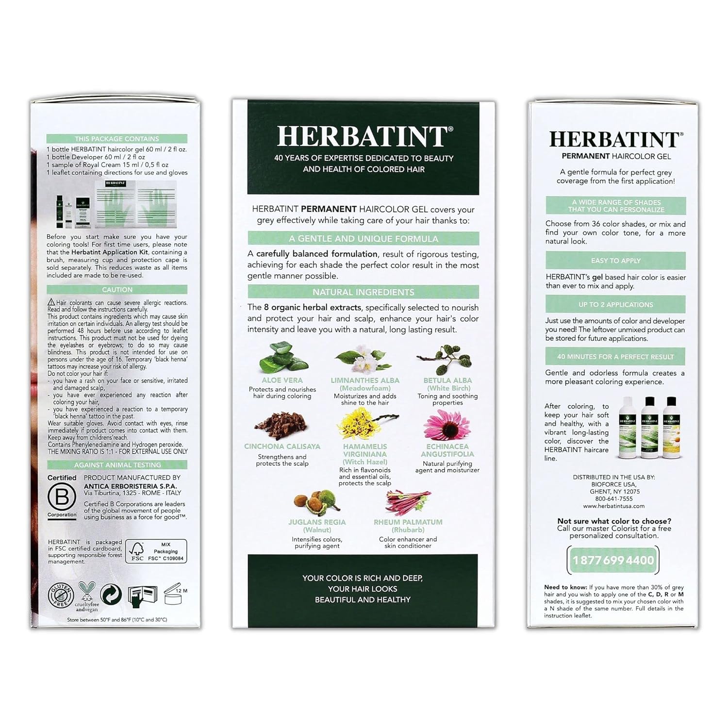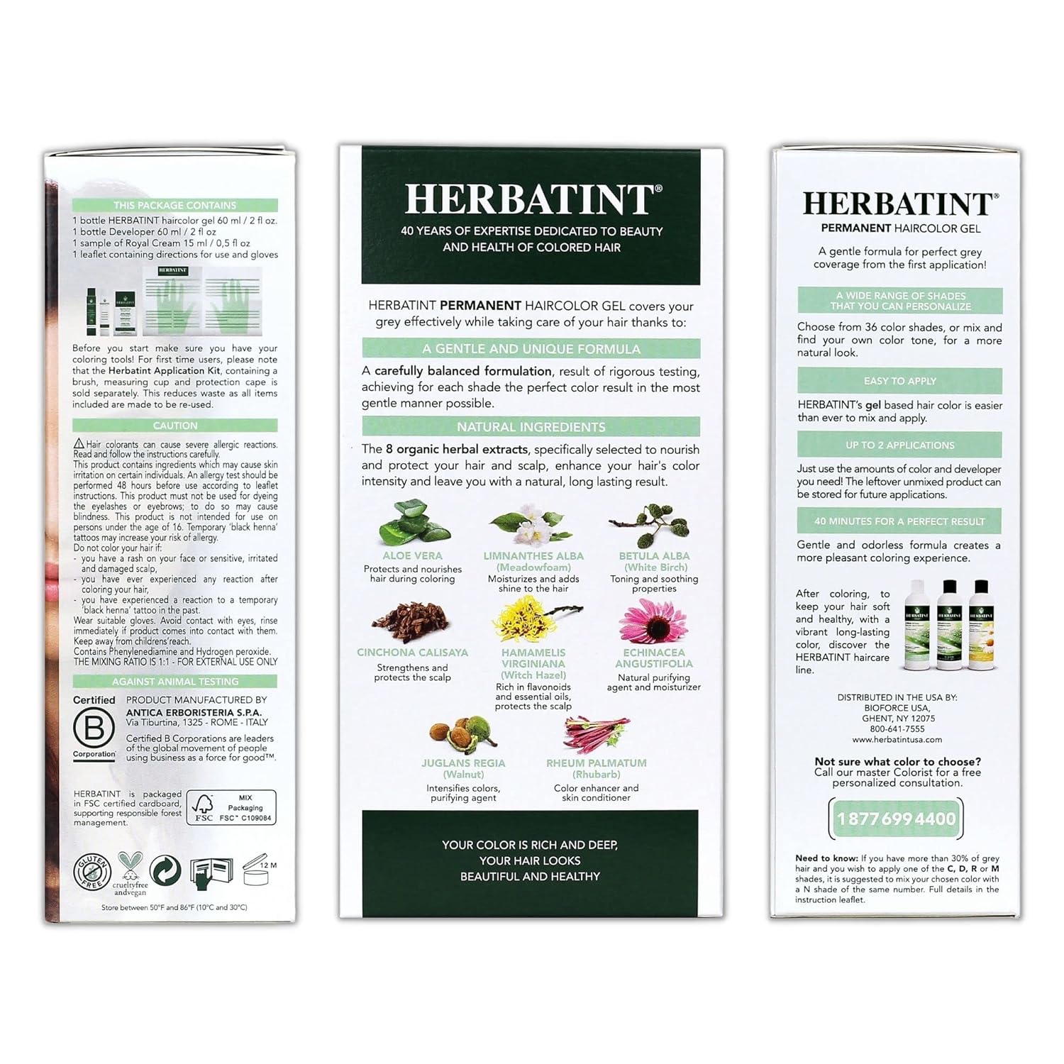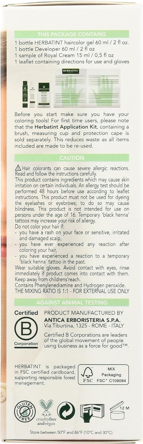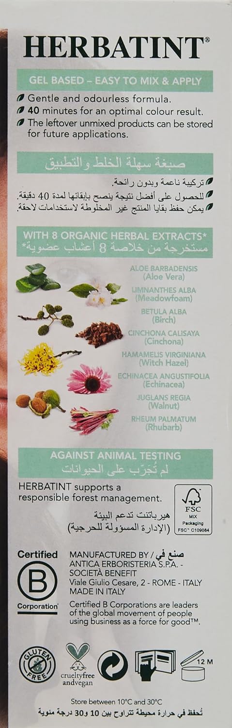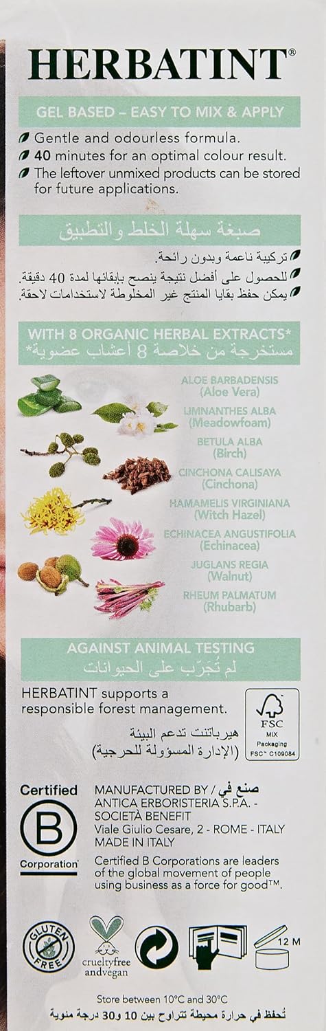 - MADE WITH NATURE IN MIND - Made with gluten-free, non-GMO ingredients. An eco-friendly, gentle formula made without ammonia, resorcinol, parabens and is alcohol fragrance free. HERBATINT is against animal testing and is suitable for vegans. Our packaging is made of totally recyclable uncoated paper. The bottles can be reclosed and used again, allowing you to use the only necessary product and keep the rest for later applications to avoid useless waste.
