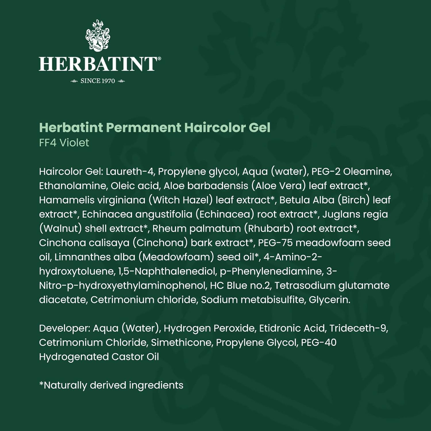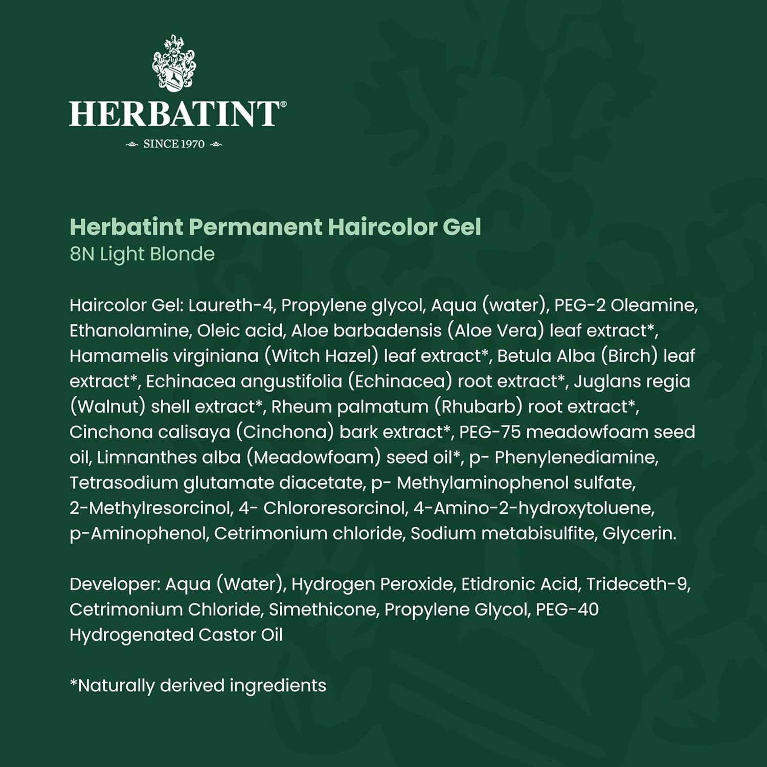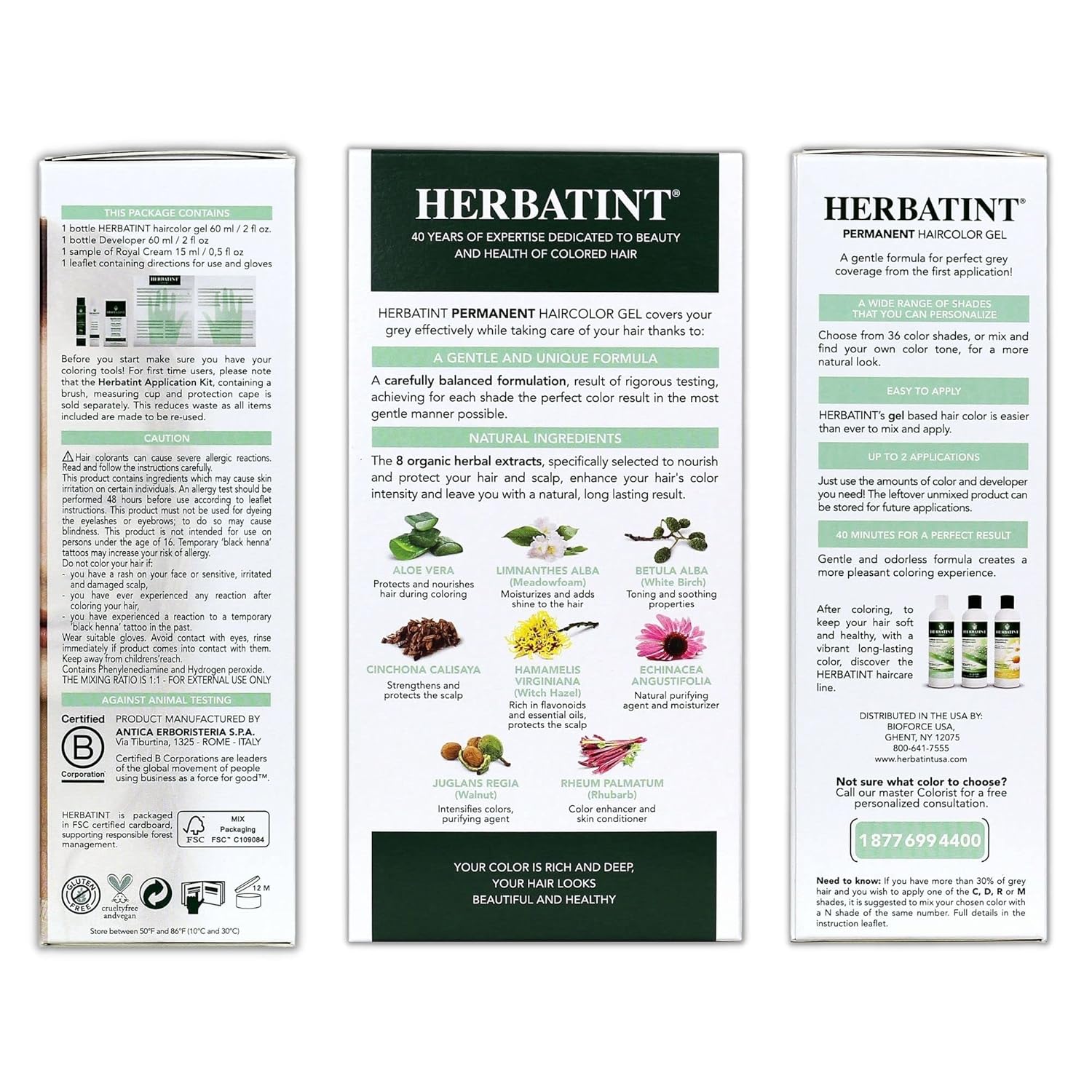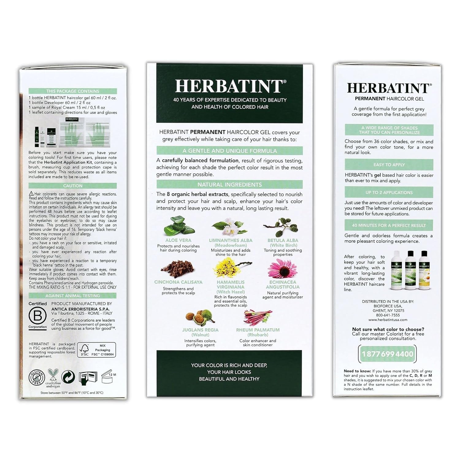 - MADE WITH NATURE IN MIND - Made with gluten-free, non-GMO ingredients. An eco-friendly, gentle formula made without ammonia, resorcinol, parabens and is alcohol fragrance free. HERBATINT is against animal testing and is suitable for vegans. Our packaging is made of totally recyclable uncoated paper. The bottles can be reclosed and used again, allowing you to use the only necessary product and keep the rest for later applications to avoid useless waste.