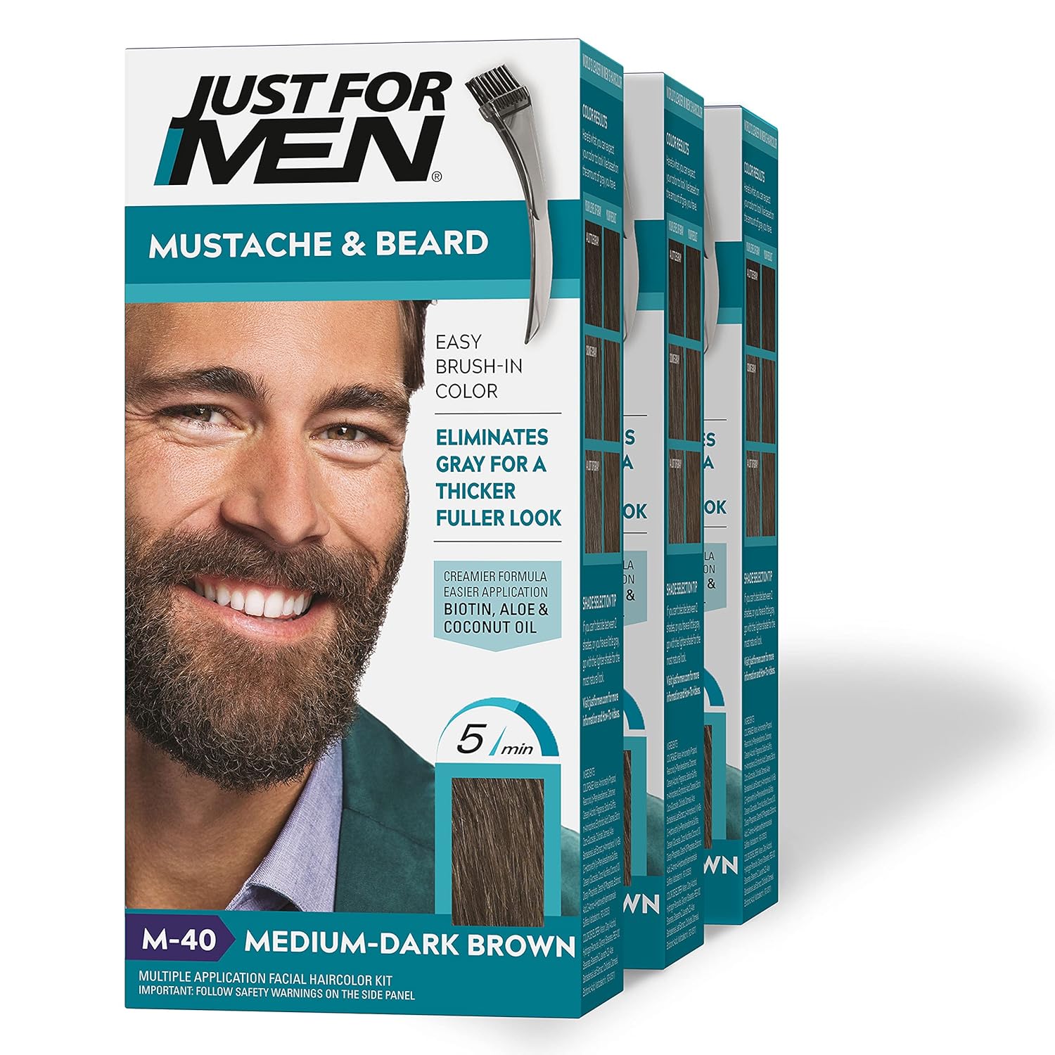 - Just For Men Mustache & Beard, Medium Brown (M-35), is beard coloring that makes getting rid of gray facial hair easy. Unlike other dyes, it restores your natural beard color, thicker and fuller look