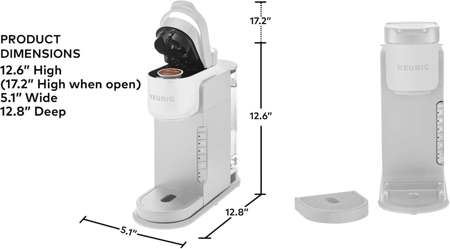 - TRAVEL MUG FRIENDLY: Removable drip tray accommodates travel mugs up to 7.4” tall.
