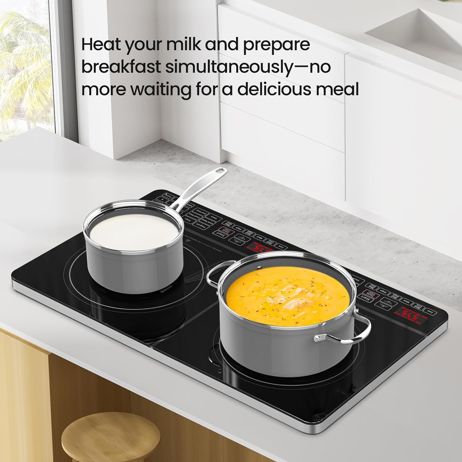 - DOUBLE THE POWER – With two induction cooking surfaces in the same unit, Double gives you the convenience of a traditional stovetop with the portability and precision high-tech device. Now you can make complete meals all at once without compromise.