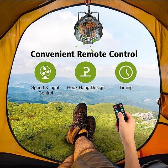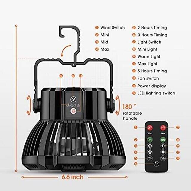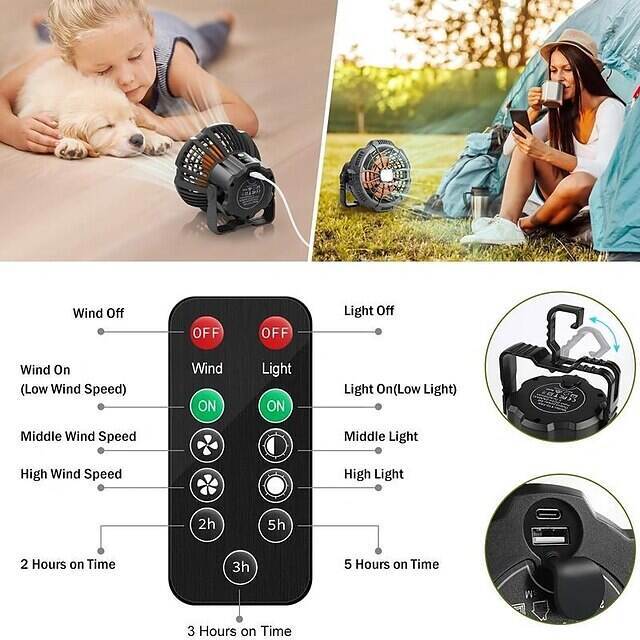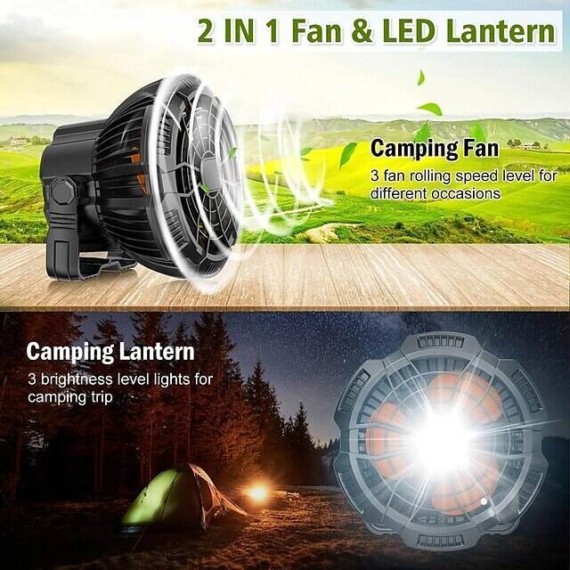 • Outdoor Camping Fan and LED Light 2-in-1 Rechargeable Explosive Charging Camping Fan Light Tent Light Wild Fishing Portable Lighting