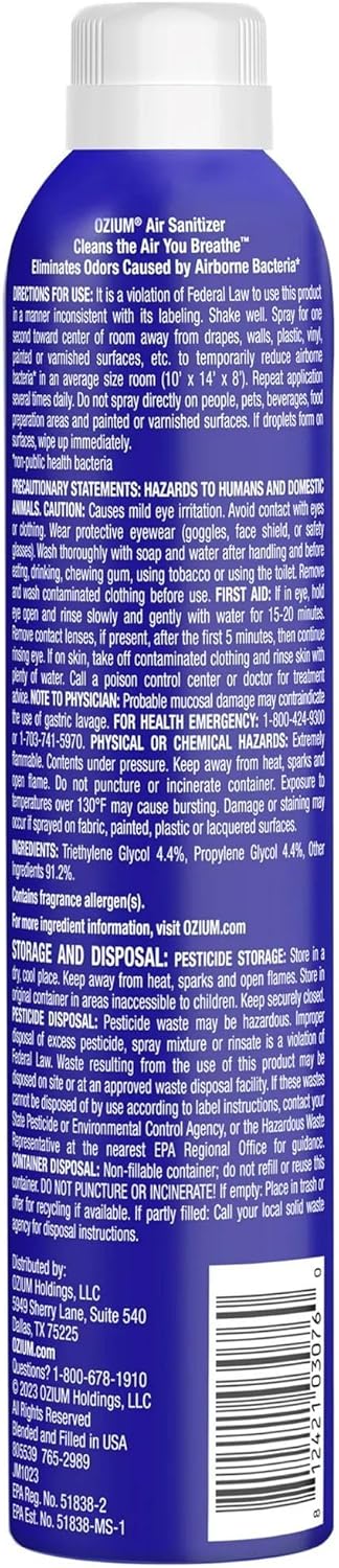- MORE THAN JUST AN AIR FRESHENER: OZIUM air sanitizing spray isn’t your typical home or car air freshener, it makes smells disappear by reducing odor-causing bacteria and germs.