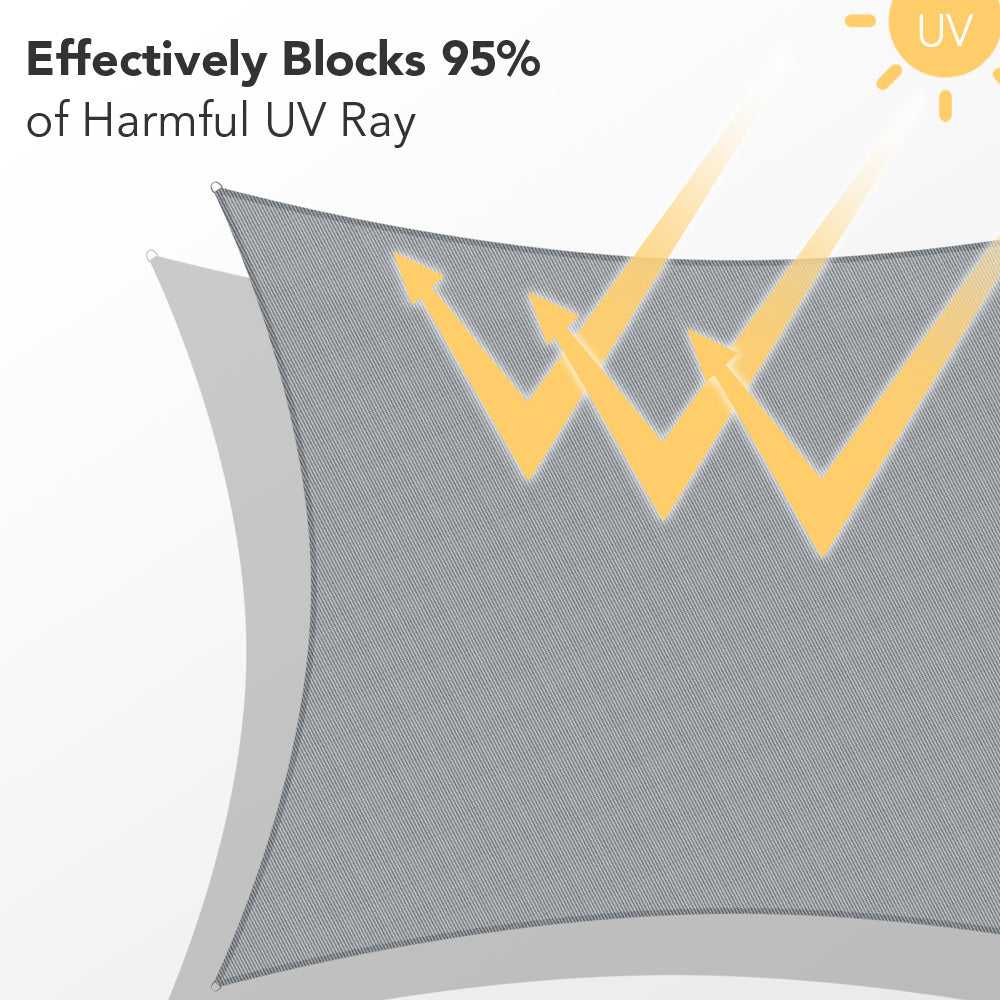 This 20' x 16' Rectangle Sun Shading Sail Tarpaulins and Ropes with knitted fabric can block harmful sun rays yet remains totally unaffected by moisture and nature temperature extremes. The best way to expand your outdoor enjoyment without absorbing UV rays which cause serious sunburns or even skin cancers.