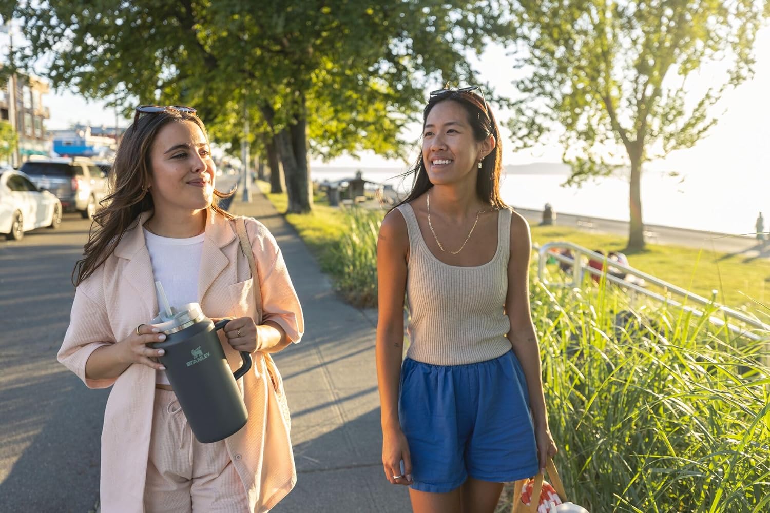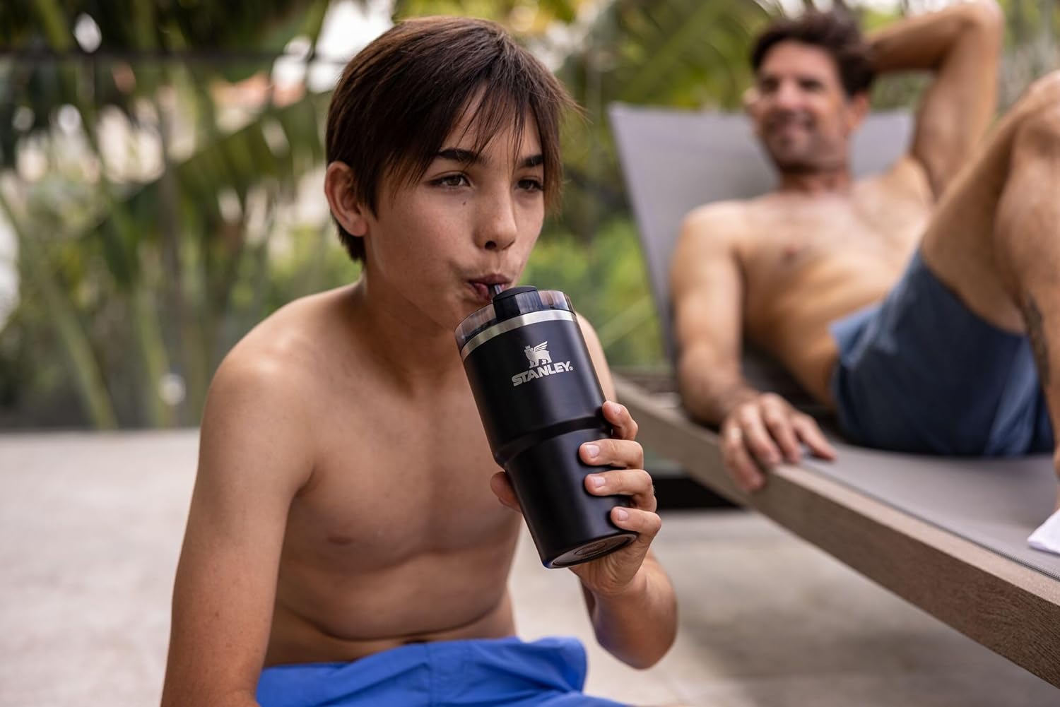 - ADVANCED LID CONSTRUCTION: Whether you prefer small sips or maximum thirst quenching, Stanley has developed an advanced FlowState lid, featuring a rotating cover with three positions: a straw opening designed to resist splashes with a seal that holds the reusable straw in place, a drink opening, and a full-cover top for added leak resistance. We’ve also included an ergonomic, comfort-grip handle, so you can easily carry your ice-cold water to work, meetings, the gym or trips out of town.