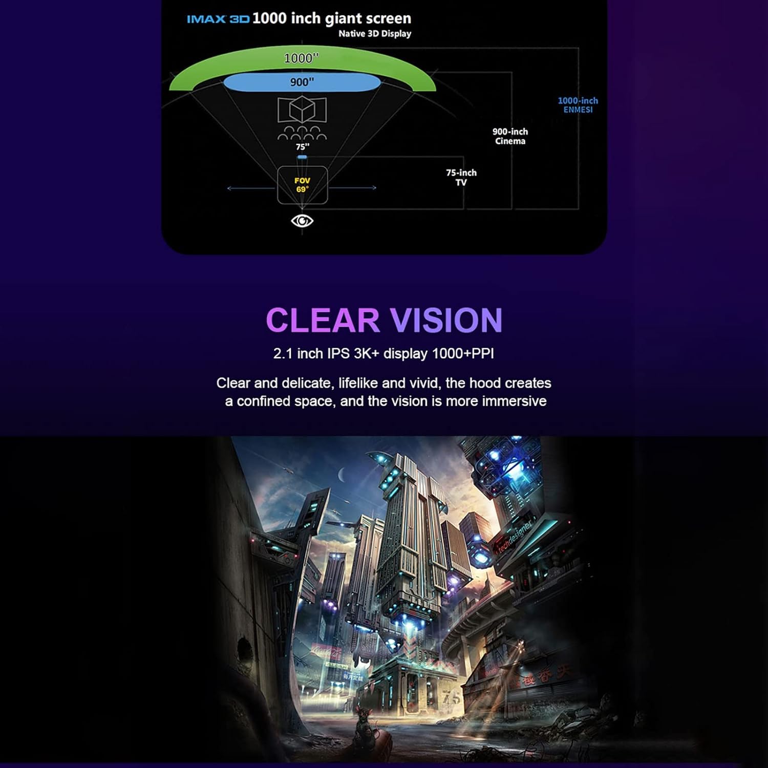 • 【Immersive feeling】increase the real three-dimensional sense of the picture, no longer willing to be boring flat 2D display. The picture is high-definition and comfortable, which is truly in line with visual habits, not dizzy! Multiple resin lens combination, SLR optical effect, weight reduction, clear picture, no blurred edges.