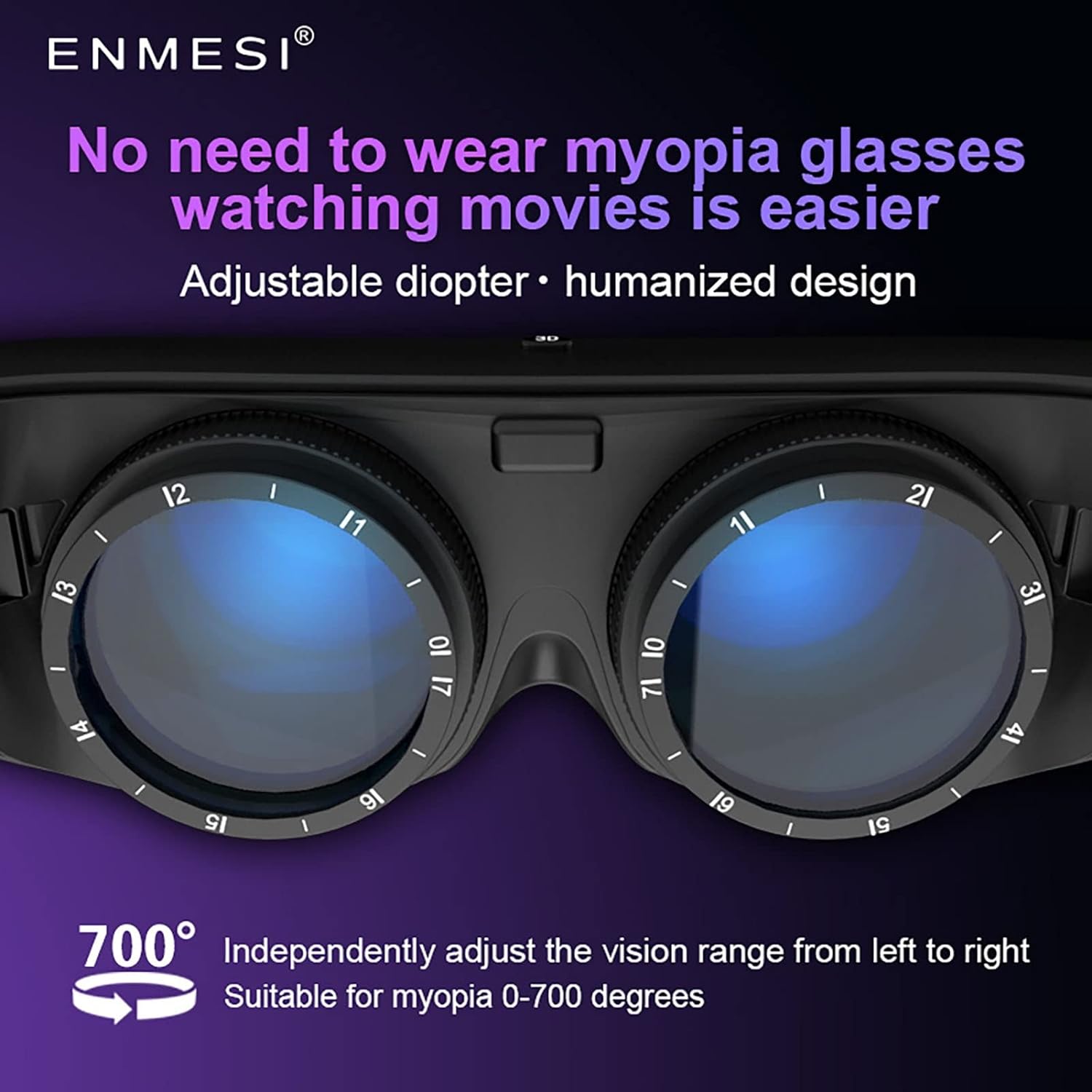 • 【ENMESI's new 3D head-mounted IMAX theater】Better experience, larger screen, higher PPI, higher resolution, lighter weight, more comfortable to wear, adjustable diopter from 0-700 degrees, support HDMI interface to connect mobile phones , computers, game consoles and other equipment. The picture has no graininess, and the picture quality is more delicate.