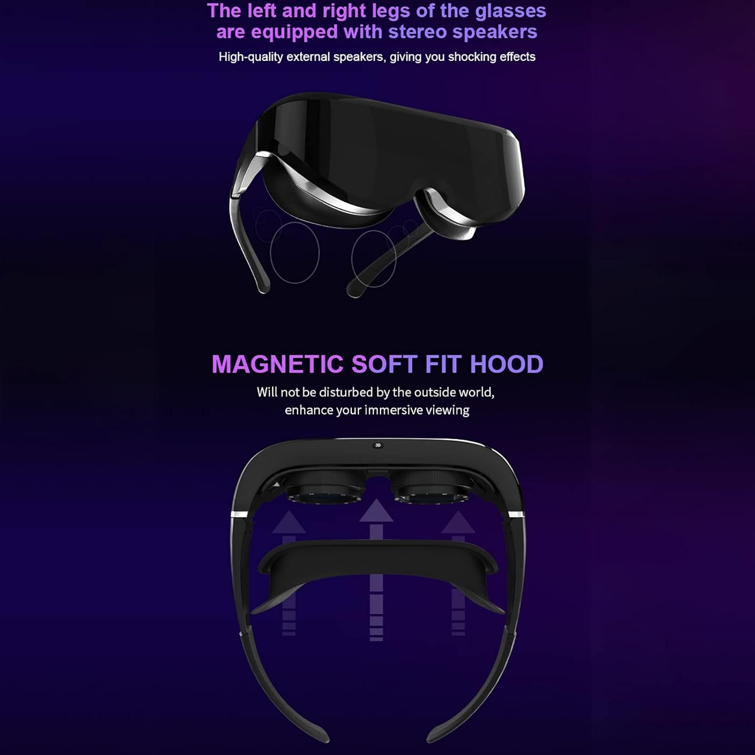 • 【Clear vision】2.1 inch lPS 3K+ display 1000+PPI, clear and delicate, lifelike and vivid, the shading mask creates a confined space, and the vision is more immersive. Open the big screen of 3A games on the front line, and support connection to various PS4, Switch, Xbox, PC and other game consoles. The left and right temples come with stereo speakers and high-quality external speakers, giving you a shocking effect.