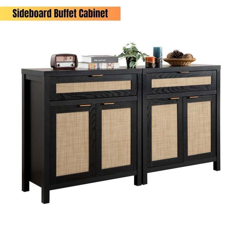 The natural rattan used in the boho rattan storage cabinet is combined with handmade weaving technology. This liquor cabinet, cupboard console table, and accent cabinet is modern and simple, and it would look great in any living room, bedroom, kitchen, bar, dining room, hallway design, or farmhouse.