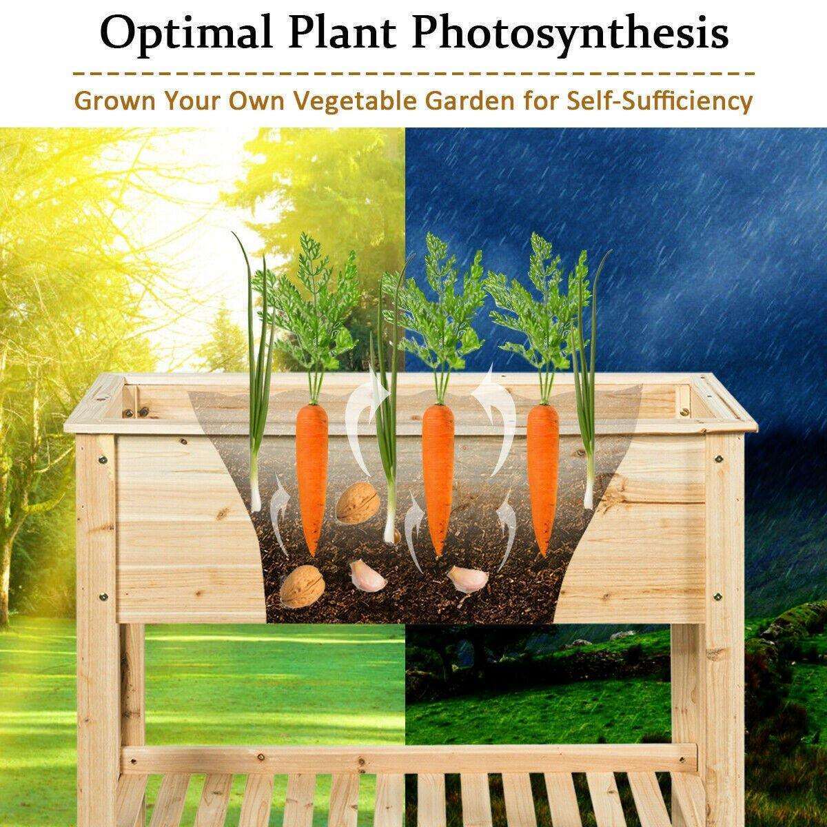 - Selected Premium Fir Wood: Made of high-quality non-paint and natural wood material, which is known for its strength and stability, this raised garden bed features durability to hold up to 175 lbs, fully applied in outdoor use. And the deep and flat planter bed with natural water percolation facilitates that your plants will absorb the maximum light to achieve the best plant photosynthesis.