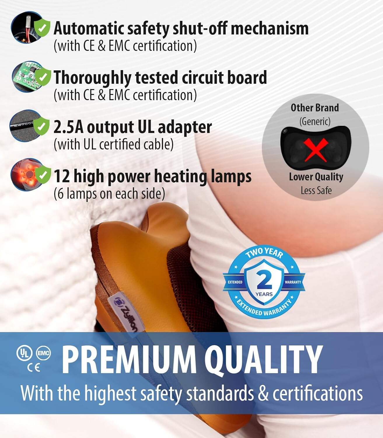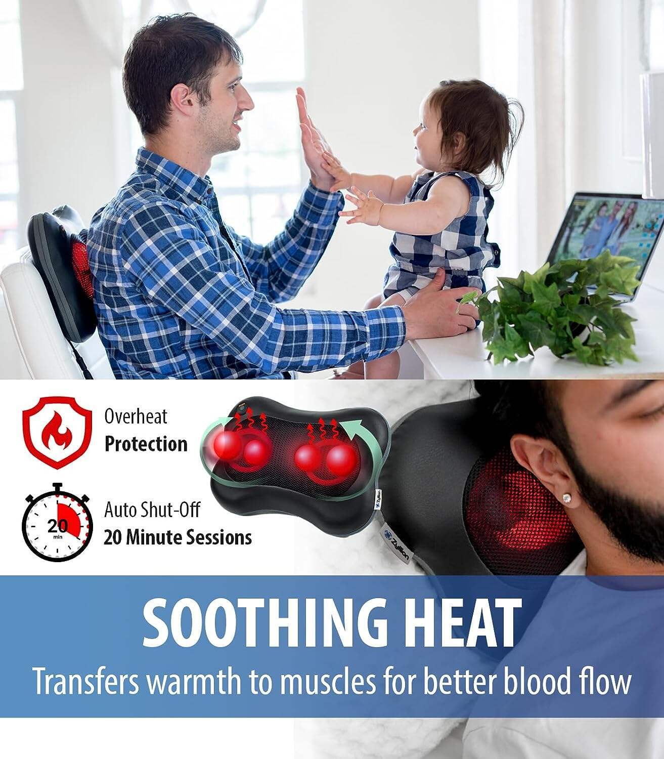 - UNMATCHED VERSATILITY & ERGONOMIC DESIGN: the Zyllion back and neck massager is not just for your back but also targets your neck and upper/lower back. Experience the soothing warmth and personalized deep tissue massage. Its ergonomic contouring fits your body perfectly, making it ideal for use in bed, office, car, or anywhere, even as a shoulder massager. Ultimate relaxation and pain relief await with our heated back massager.