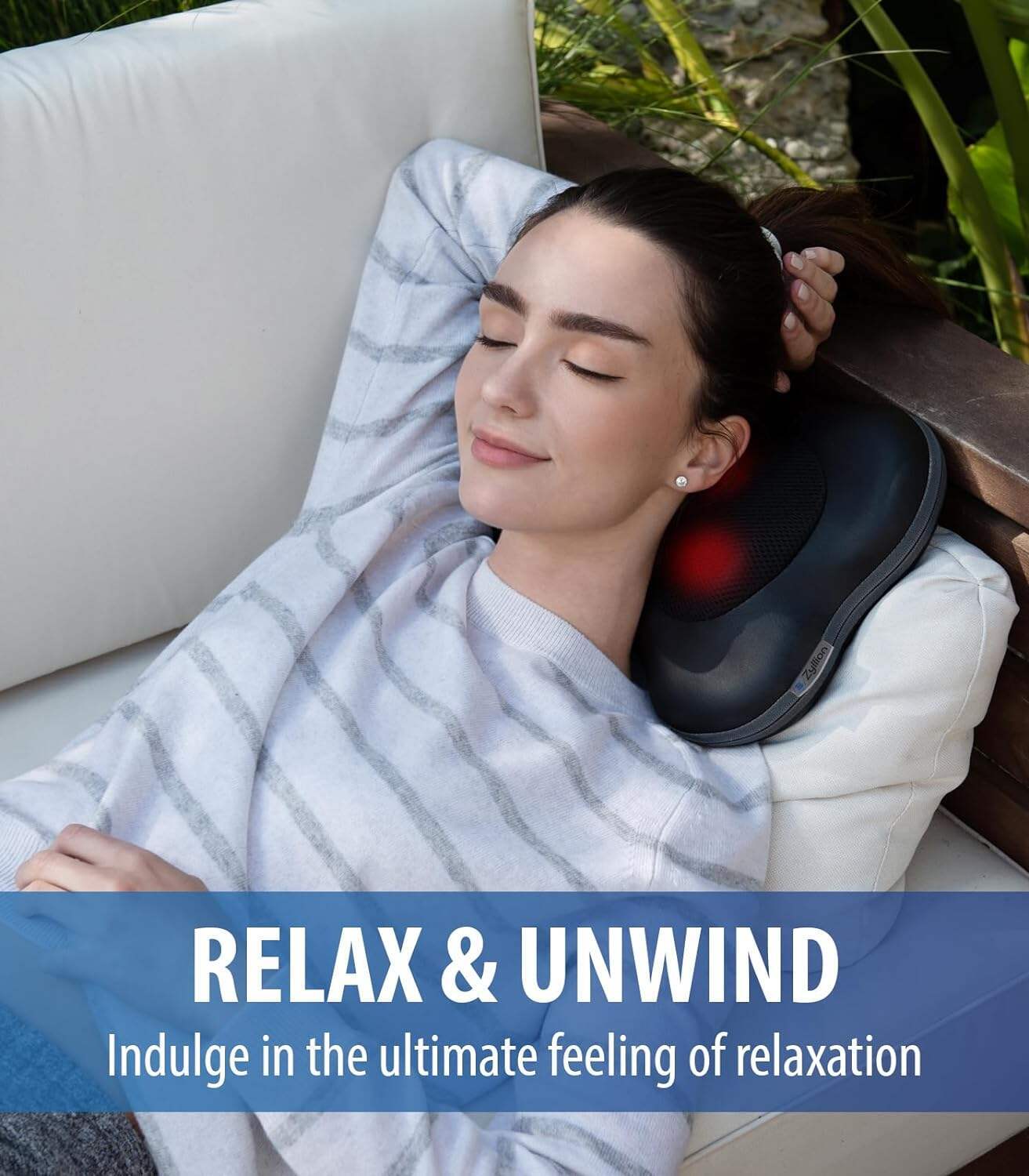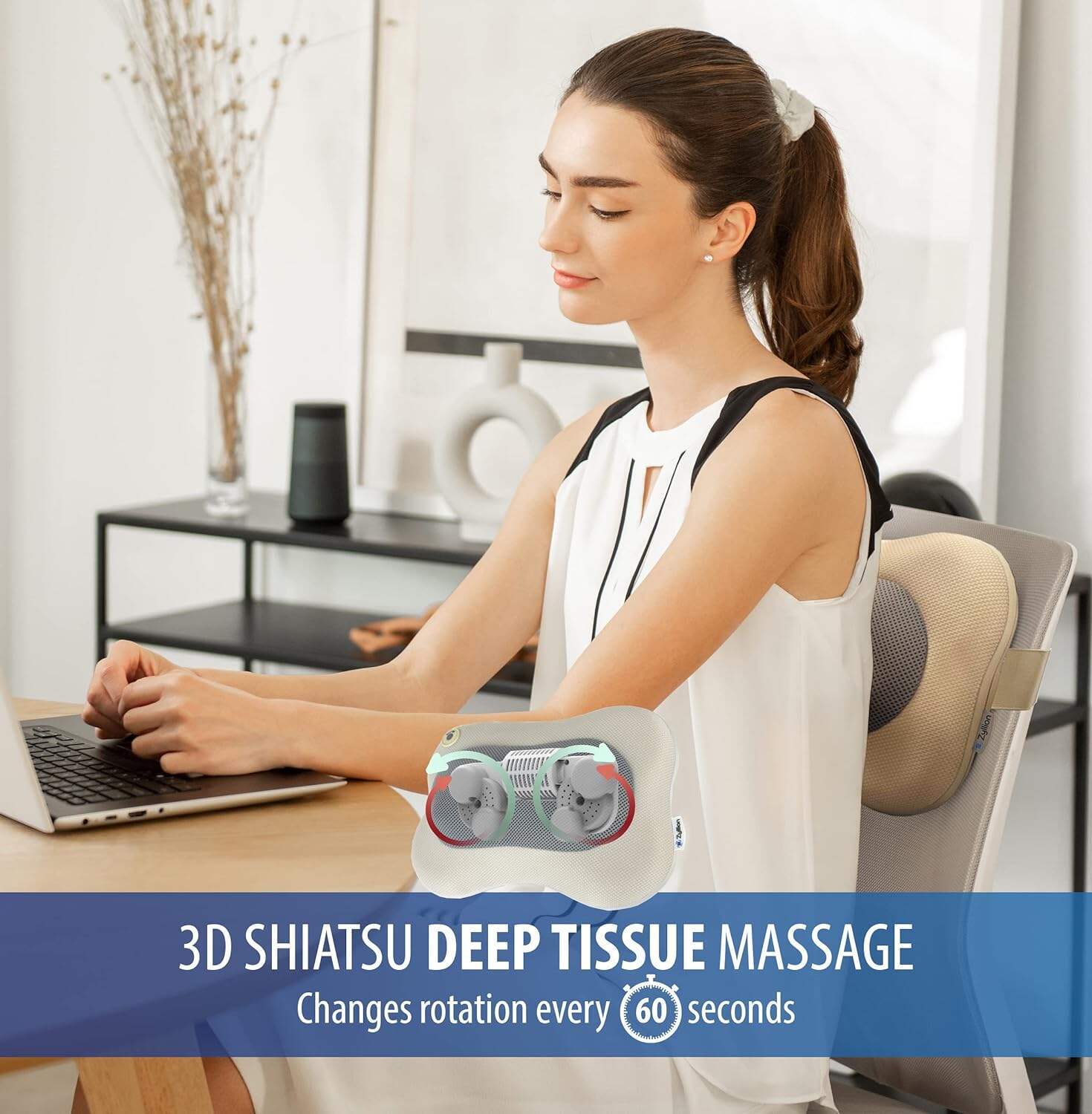 - CONVENIENT COMFORT: meticulously designed for your utmost convenience. Experience the bliss of a deep tissue back massage with soothing heat, easing back pain and tension. Please note that it requires a plug-in power source and is not cordless or rechargeable. Delight in a soothing massage at home or in the office with our user-friendly device. It includes a car adapter, perfect for passengers seeking relaxation during travel.