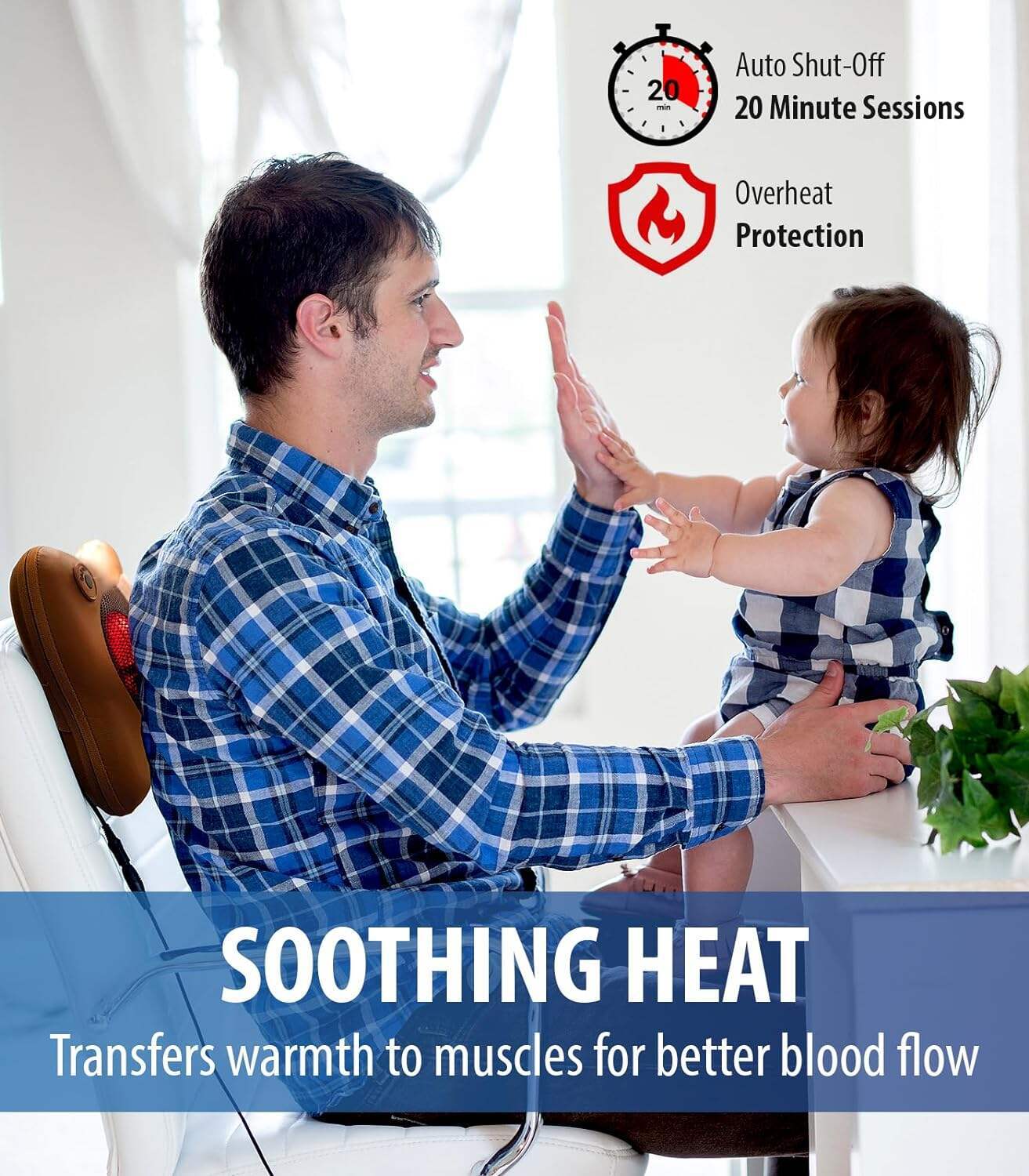 - YOUR SAFETY IS PARAMOUNT: our muscle massager boasts vital safety features, including overheat protection and a soothing heat function. It guarantees a secure and comfortable massage, automatically turning off after 20 minutes. Whether you need relief for back pain or tension in the neck and shoulders, the comforting heat function enhances relaxation. Perfect for heated back or neck massages, prioritize your well-being with our trusted shoulder massager for men.