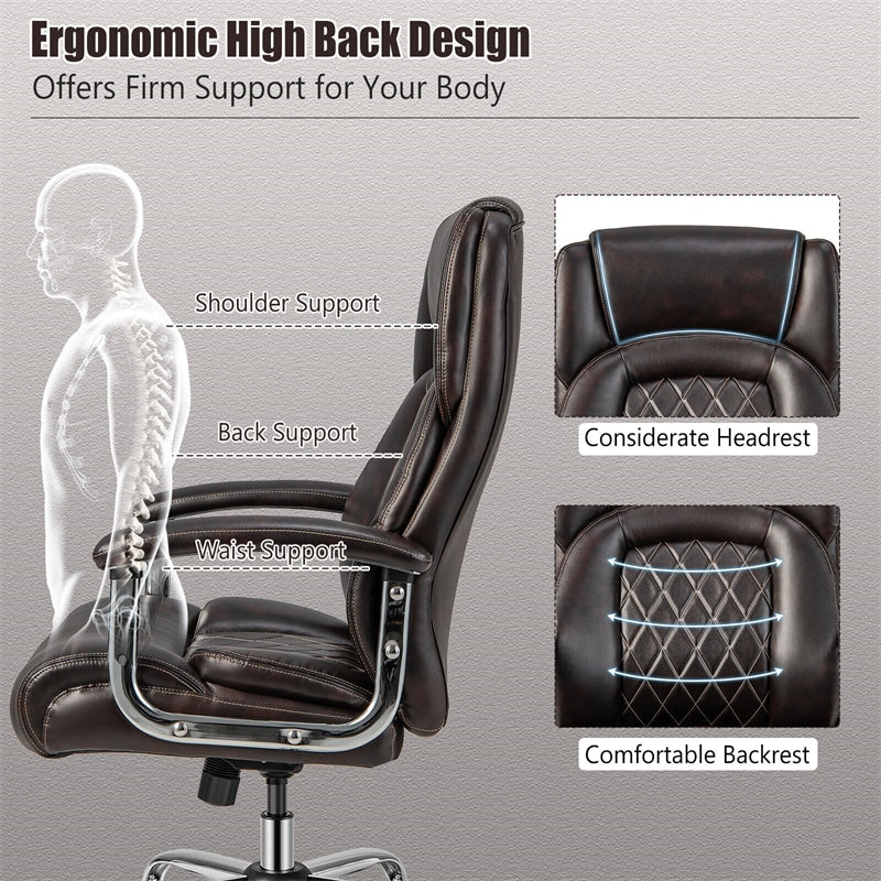 • 500lbs Height Adjustable Office Chair Swivel Computer Task Desk Chair Leather Executive Chair with Heavy Duty Metal Base