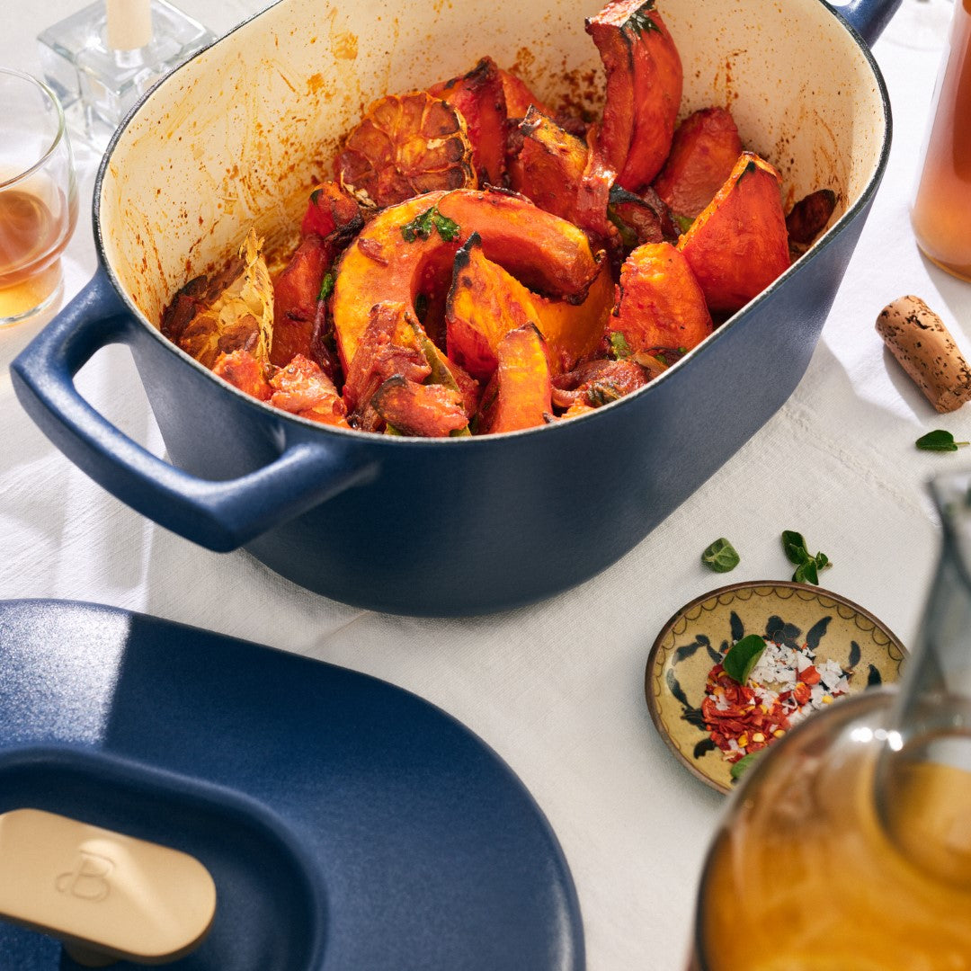 From stovetop to tabletop. Made for everyday cooking with friends and family, the Beautiful 6qt Enameled Cast Iron Dutch Oven effortlessly transitions between stovetop, oven and tabletop to serve and entertain. Impeccably crafted with sturdy, wide carrying handles and a large stainless steel knob, the Beautiful Dutch Oven is oven safe up to 500°F and compatible with all stove tops, including induction. Complete with a durable cast iron construction that retains heat and locks in moisture and finished with an enameled coating that reduces sticking. Created by Drew Barrymore, Beautiful Kitchenware™ combines elegant design, contemporary colors and modern silhouettes for high-performance cookware that looks beautiful on your stovetop.