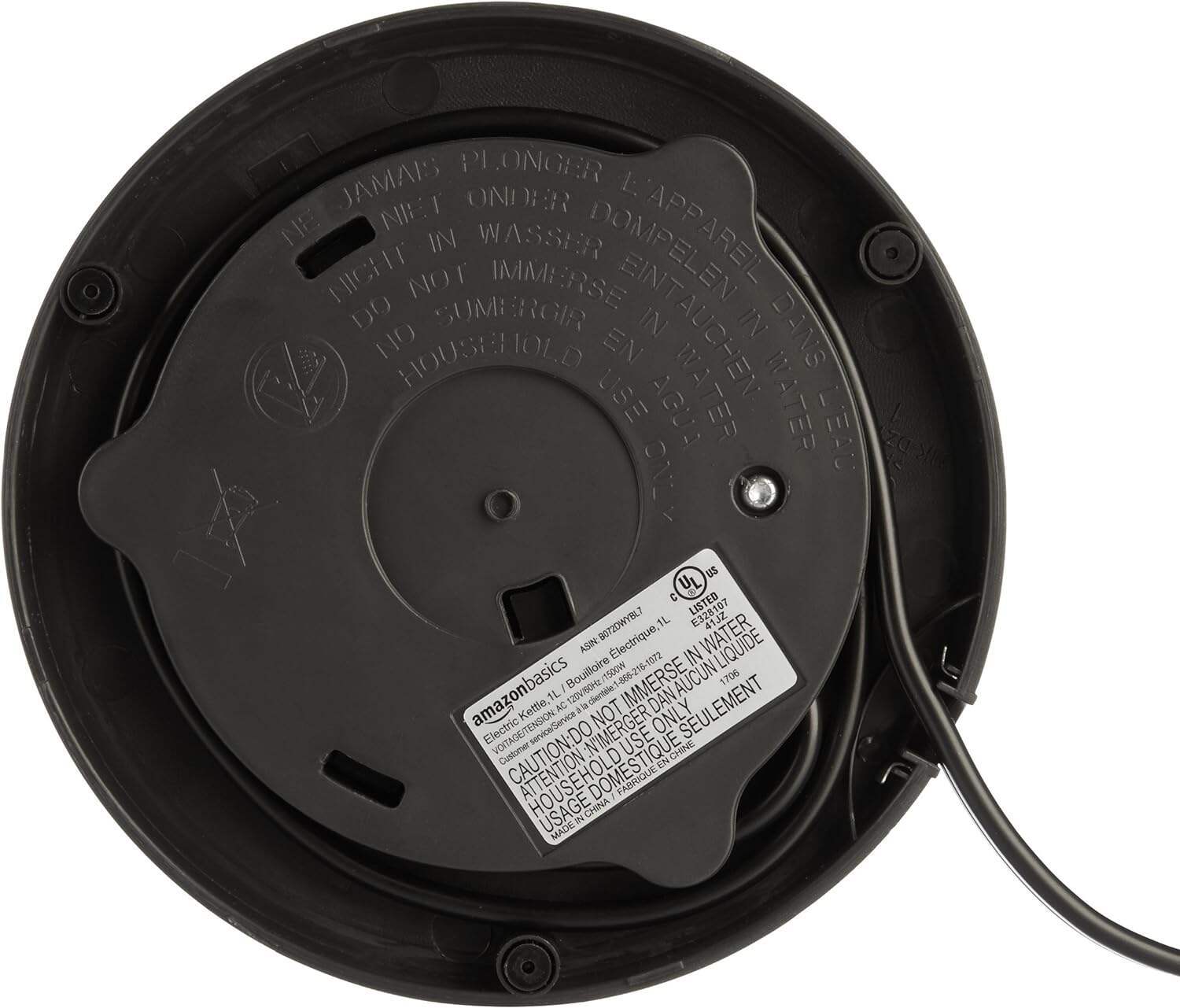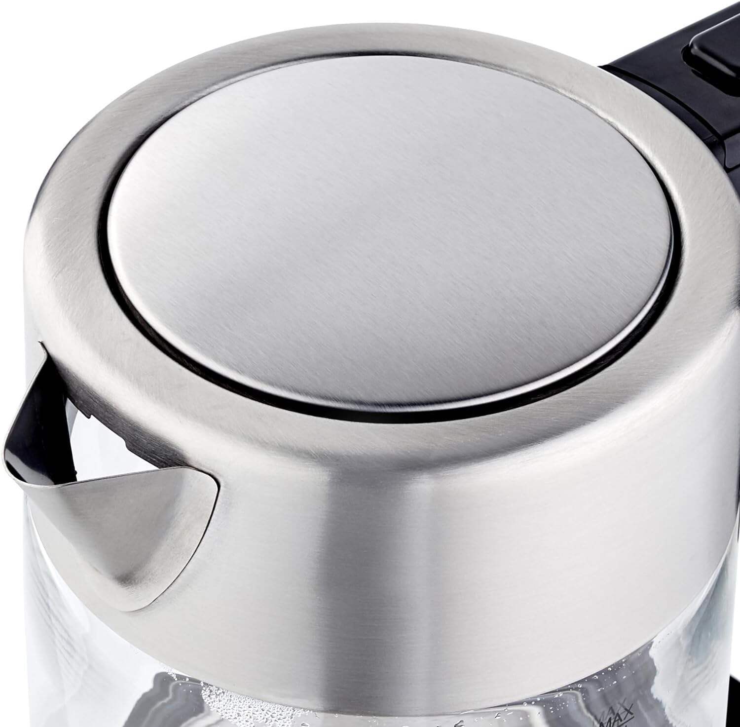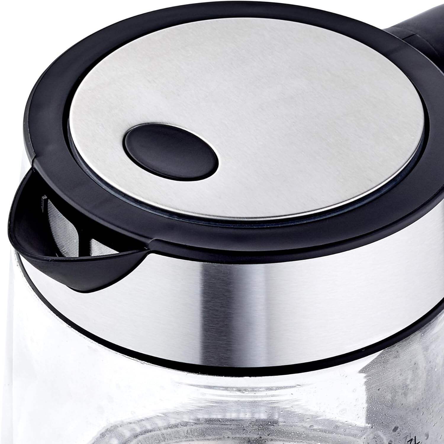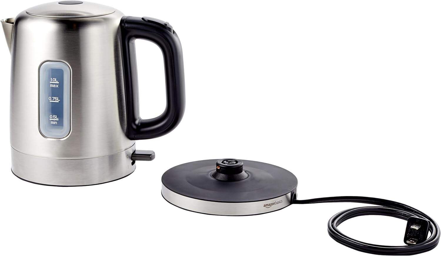 - Electric kettle with a 1.7-liter cordless glass carafe
