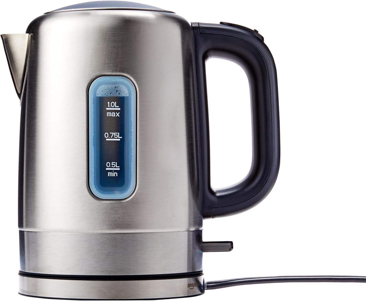 - Safety includes auto shut-off and boil dry protection