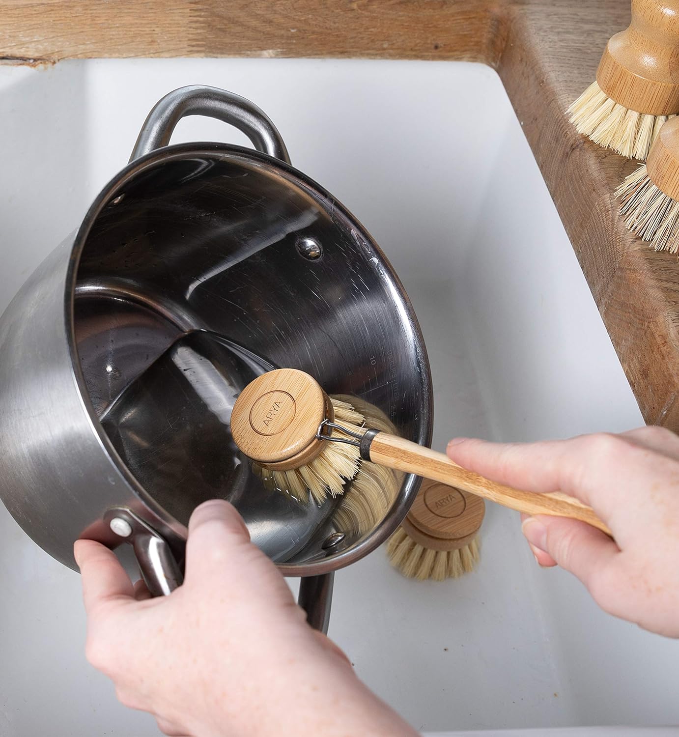 - 🌿 VERSATILE & MULTI-FUCTIONAL | ARYA’S Eco-brush gift set contains 4 versatile and functional brushes and one replacement head. The brushes come in different sizes and with different characteristics. They can be used to tackle all manner of pots, pans, cups and assorted kitchen utensils.