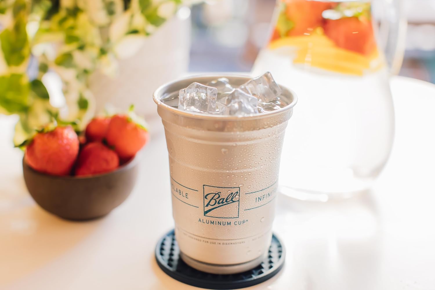 - Sustainable: The Ball Aluminum Cup is made from 90% recycled aluminum content.