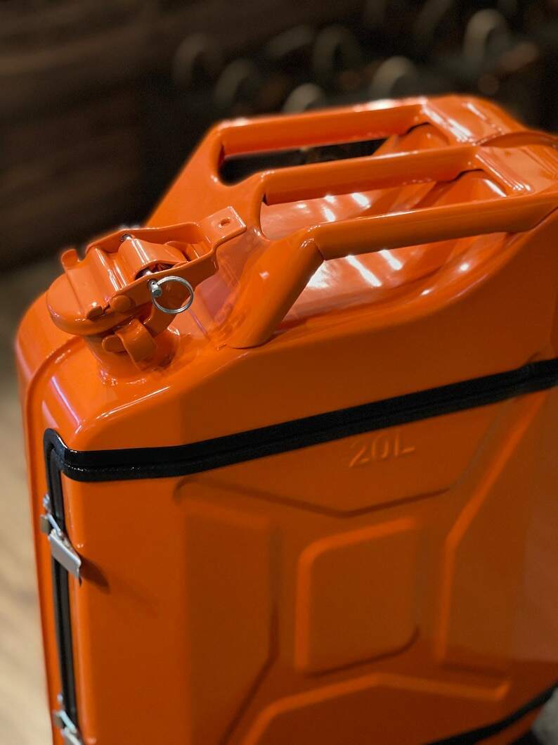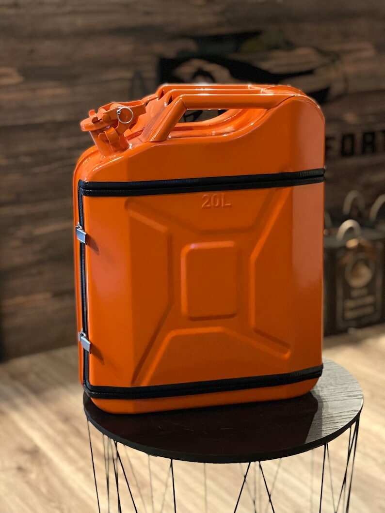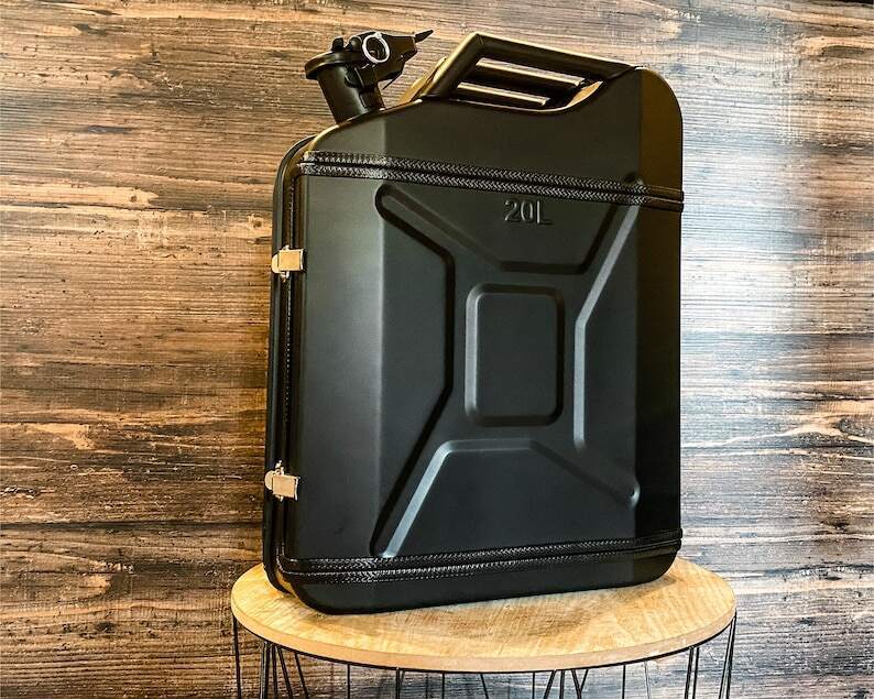 It looks like a real canister of 20 liters for fuel, but inside you will find a real surprise. Canister height 20"