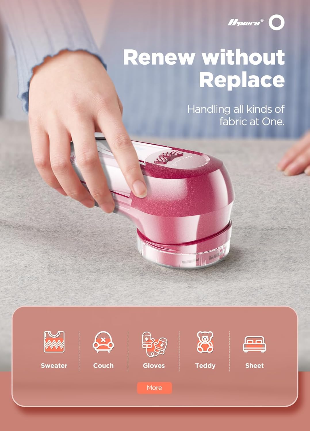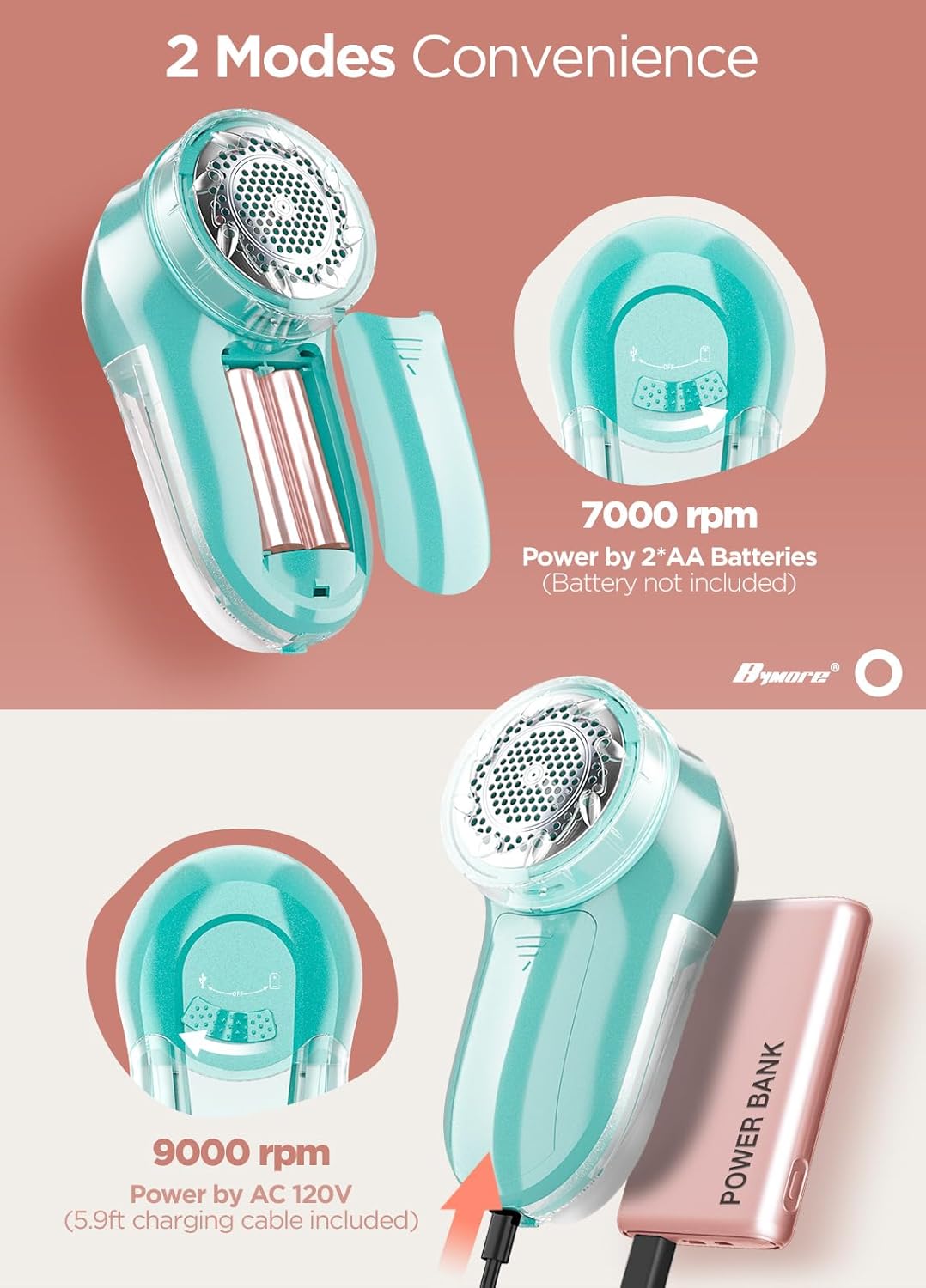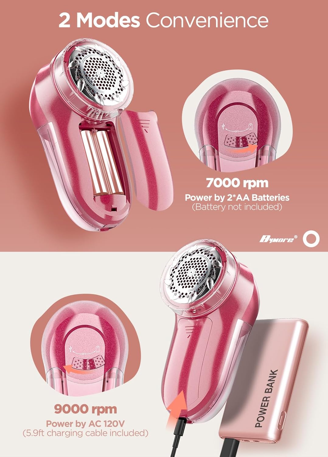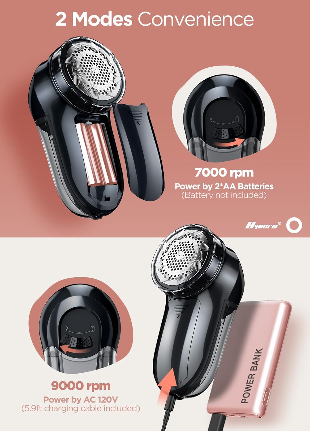 • Bymore Fabric Shaver, Lint Remover, Lint Shaver Defuzzer Sweater Shaver for Clothes and Furniture AC Adapter or Battery Operated Pill Fuzz Remover