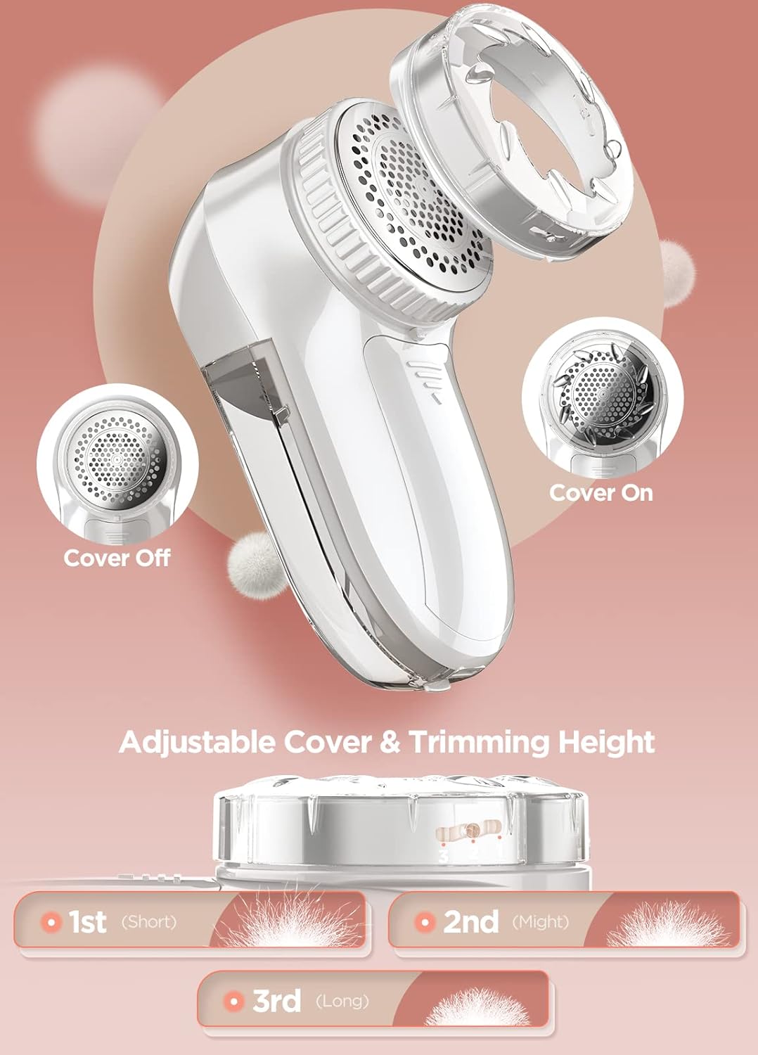 • Zero Risk Sweater Shaver: With three size honeycomb smooth surface and adjustable height, the sweater shaver is ideal for different lint types on clothes and furniture without damaging