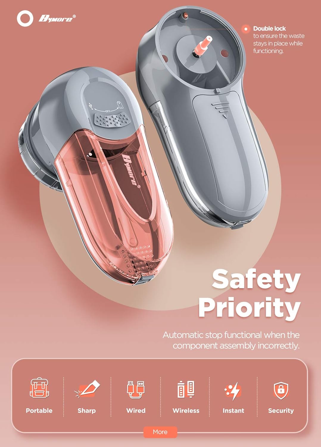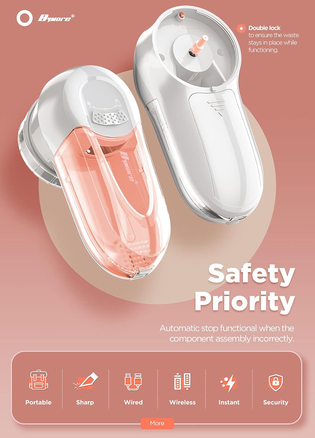 • Secure Sweater Shaver Container: Double lock container to prevent waste falling while using