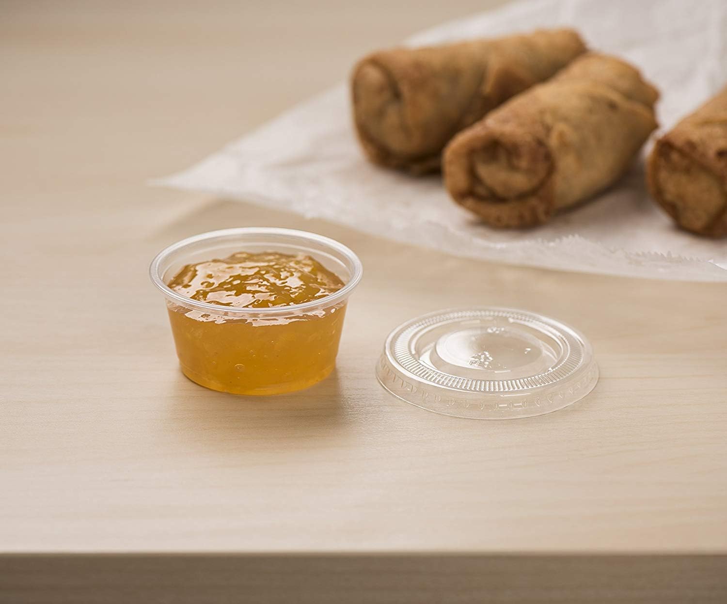 - Generous Pack Size: Each pack includes 100 plastic condiment cups with lids with matching lids, providing a substantial quantity for serving multiple guests or handling a variety of portioning needs in one go.