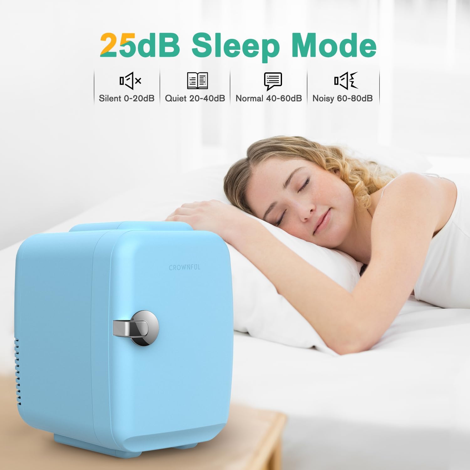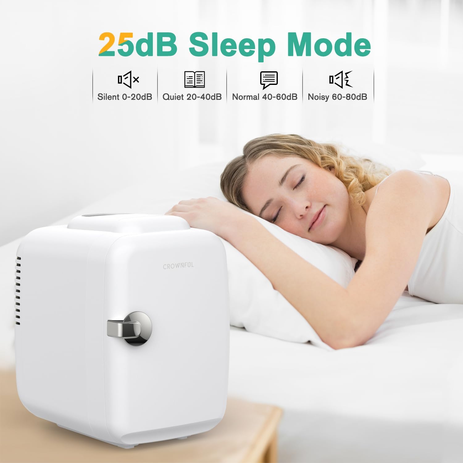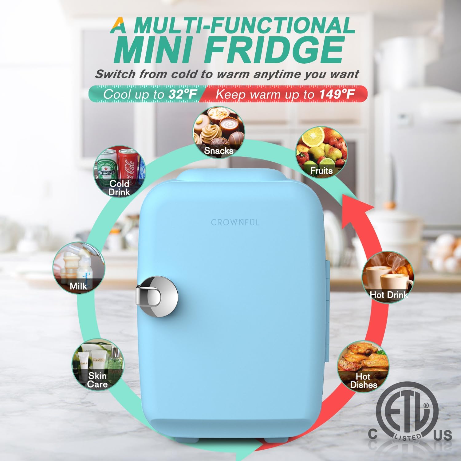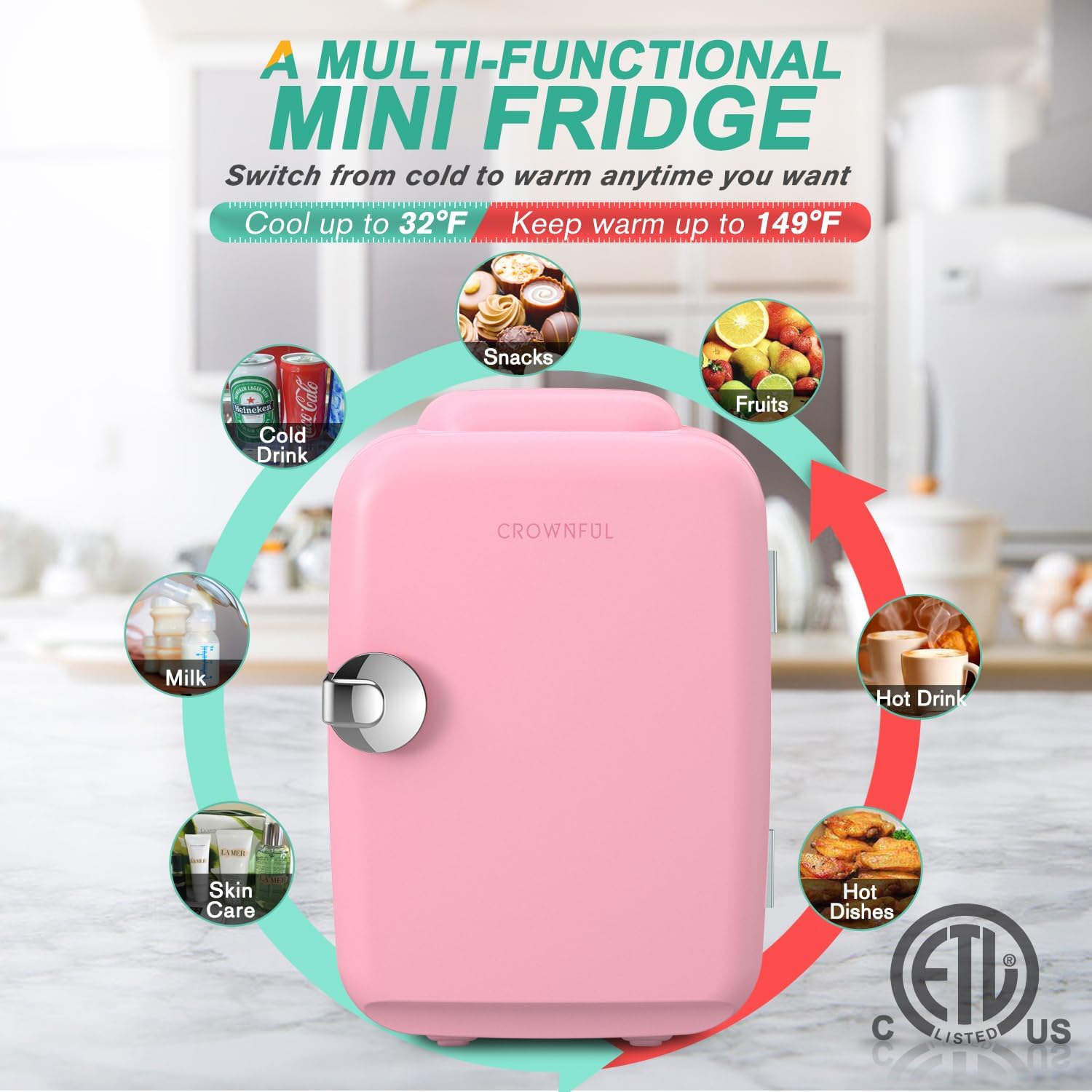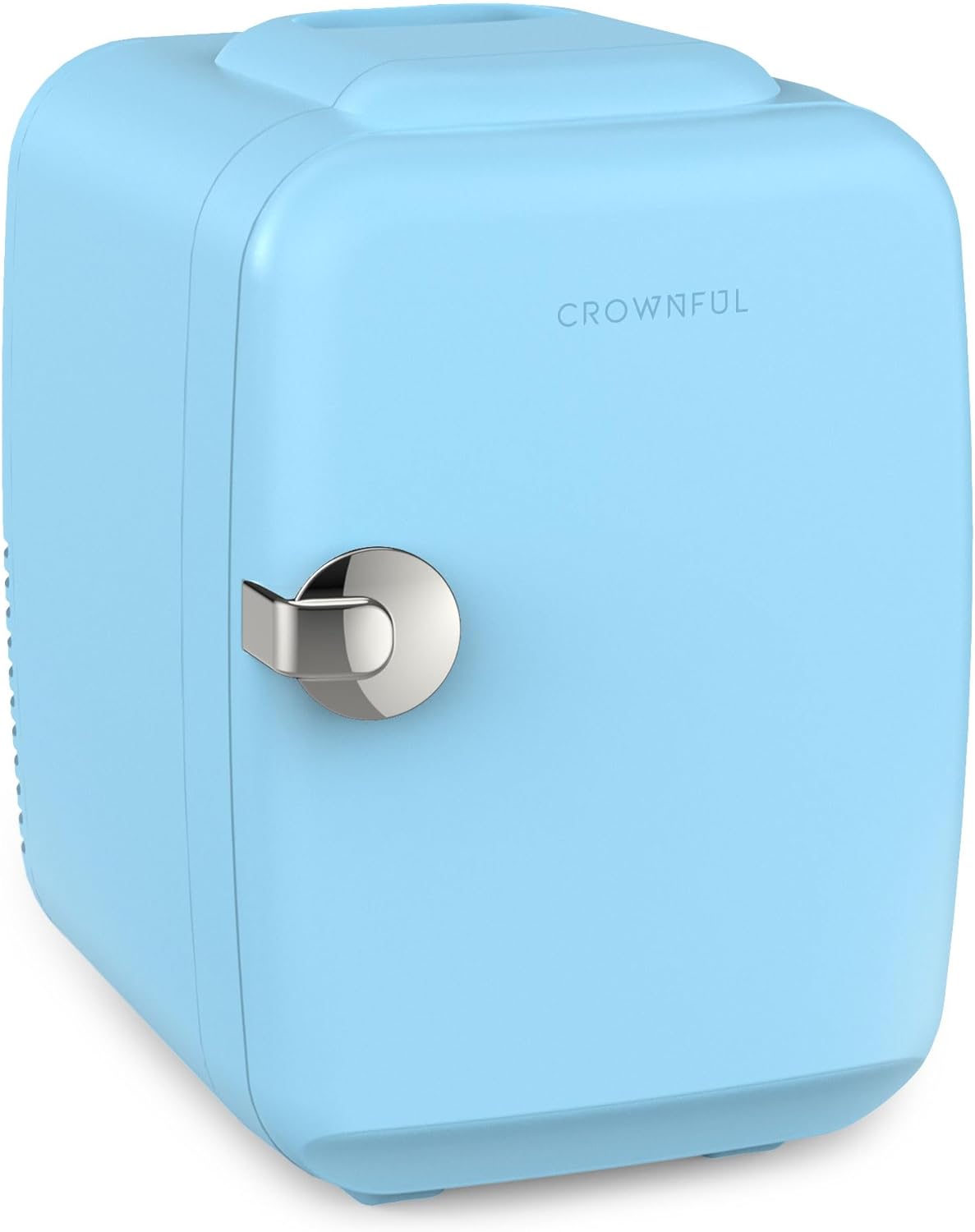 • CROWNFUL Mini Fridge, 4 Liter/6 Can Portable Cooler and Warmer Personal Refrigerator for Skin Care, Cosmetics, Beverage, Food,Great for Bedroom, Office, Car, Dorm, ETL Listed (White)