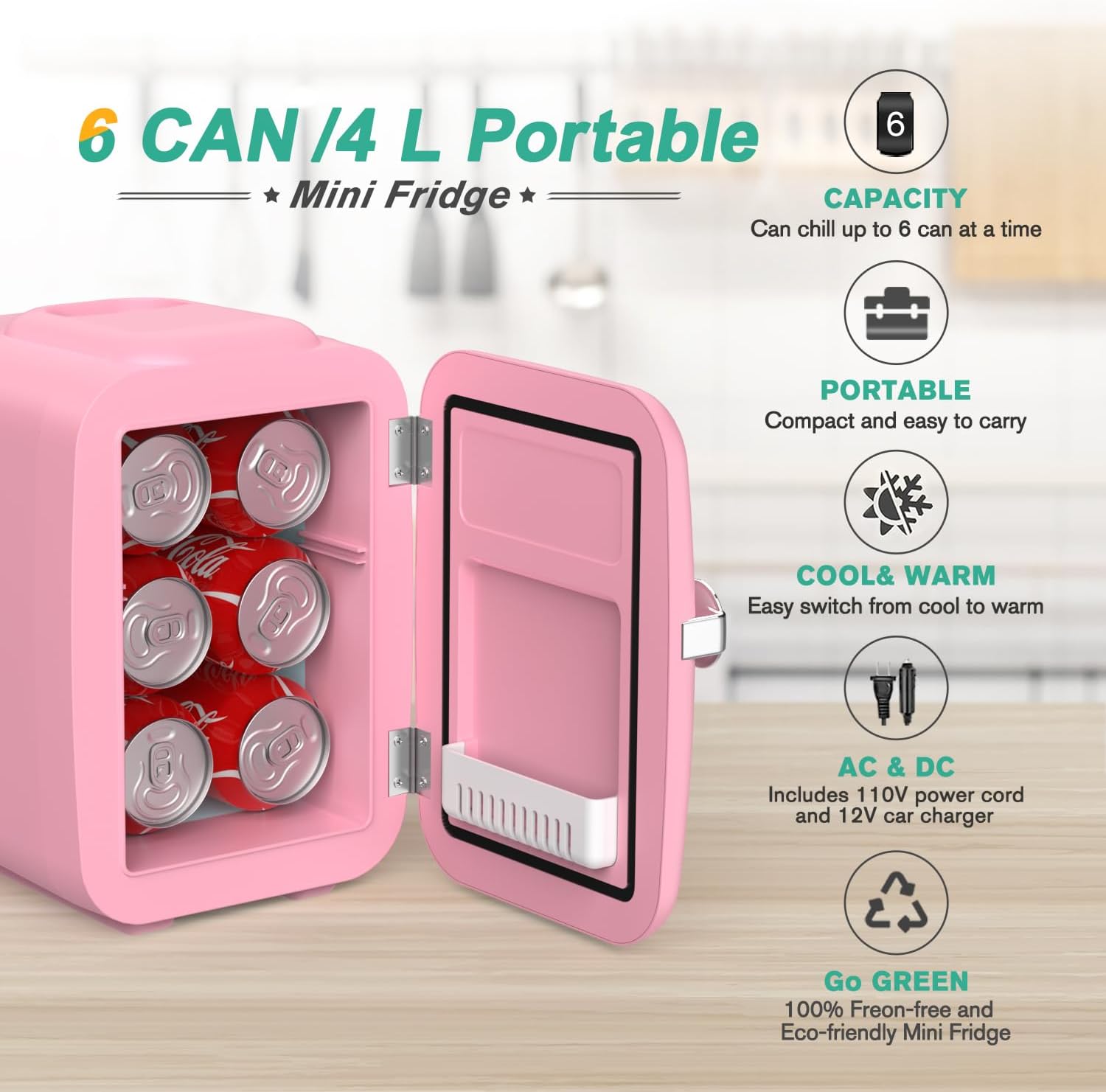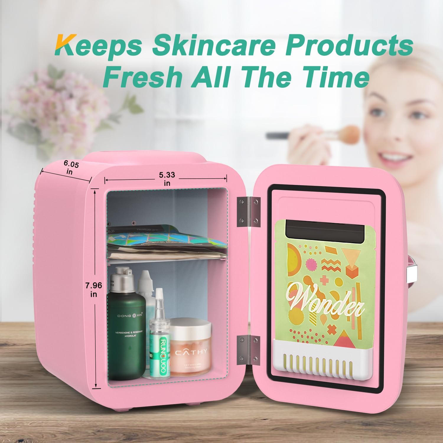 • [Multifunctional Mini Fridge] An excellent little device for storing food, drinks, beer, snacks, breast milk, cosmetics, and skincare products. This is the perfect present for women because it also functions as a personal skin care fridge.
