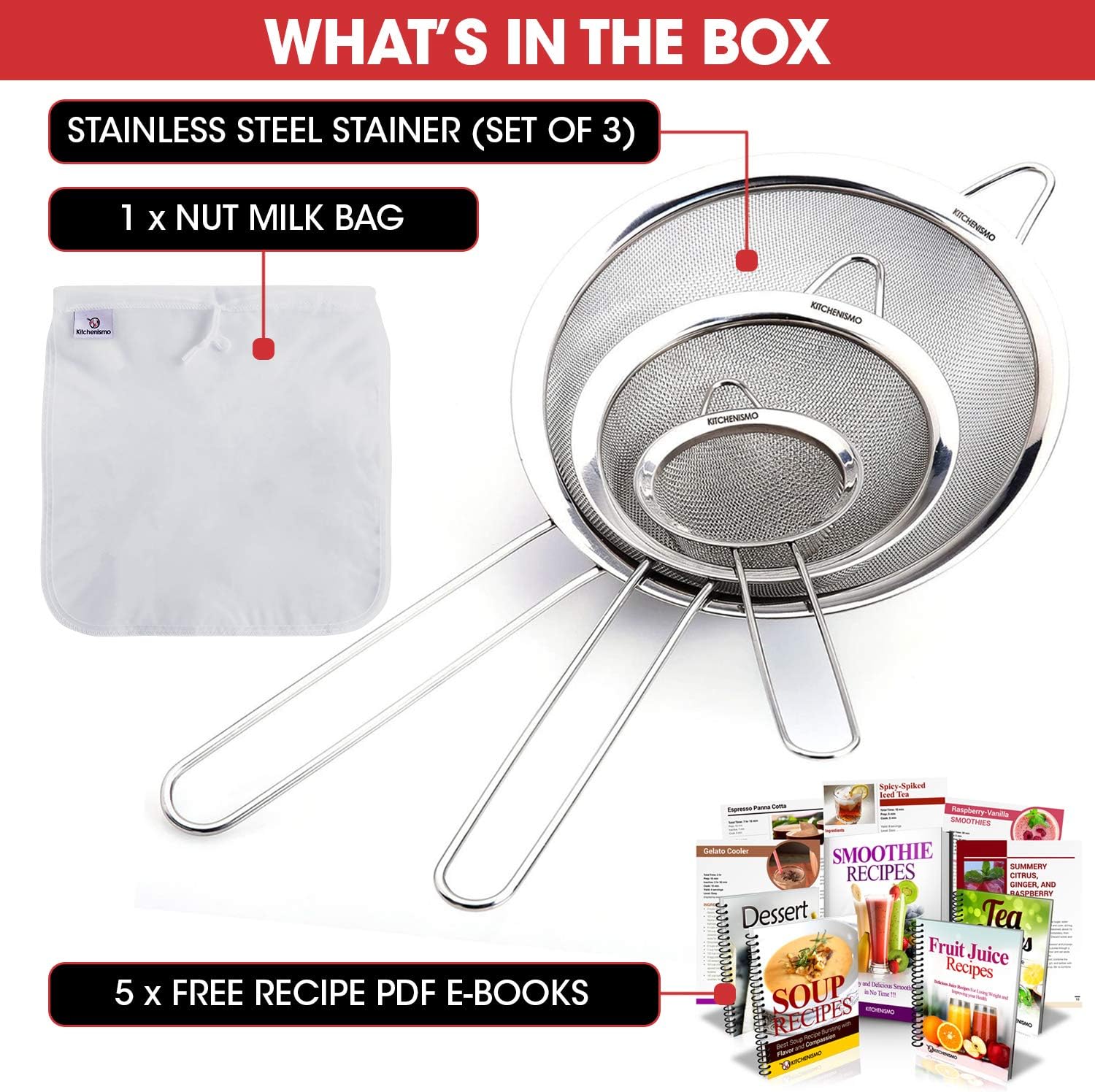 - INCLUDED: The Cuisinart set of strainers comes in 3 sizes from 3-⅛-inch, 5-½-inch and 7-⅞-inch sizes