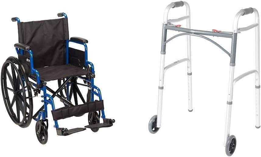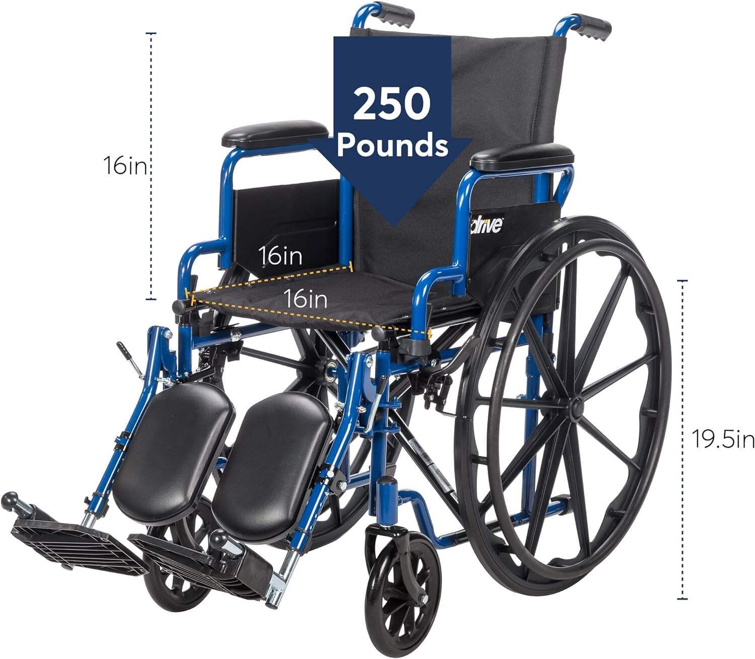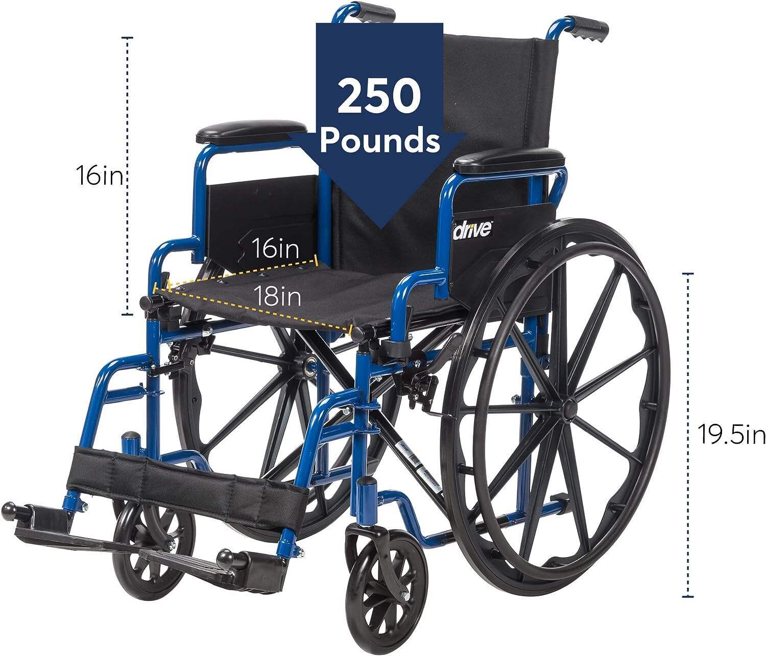 - Overall dimensions: 42"(L) x 24"(W) x 36"(H); Closed width: 12.5"; Seat dimensions: 16"(D) x 18"(W) x 19.5"(H); Armrest height: 8"; Weight capacity: 250 pounds. Comes with push-to-lock wheel locks