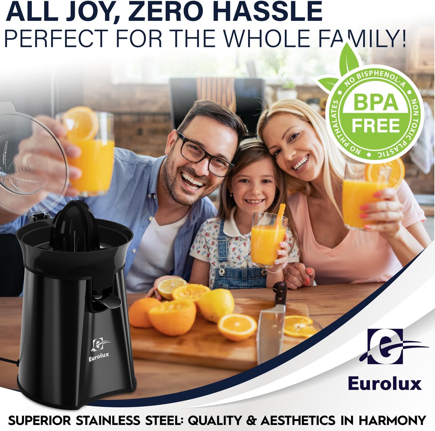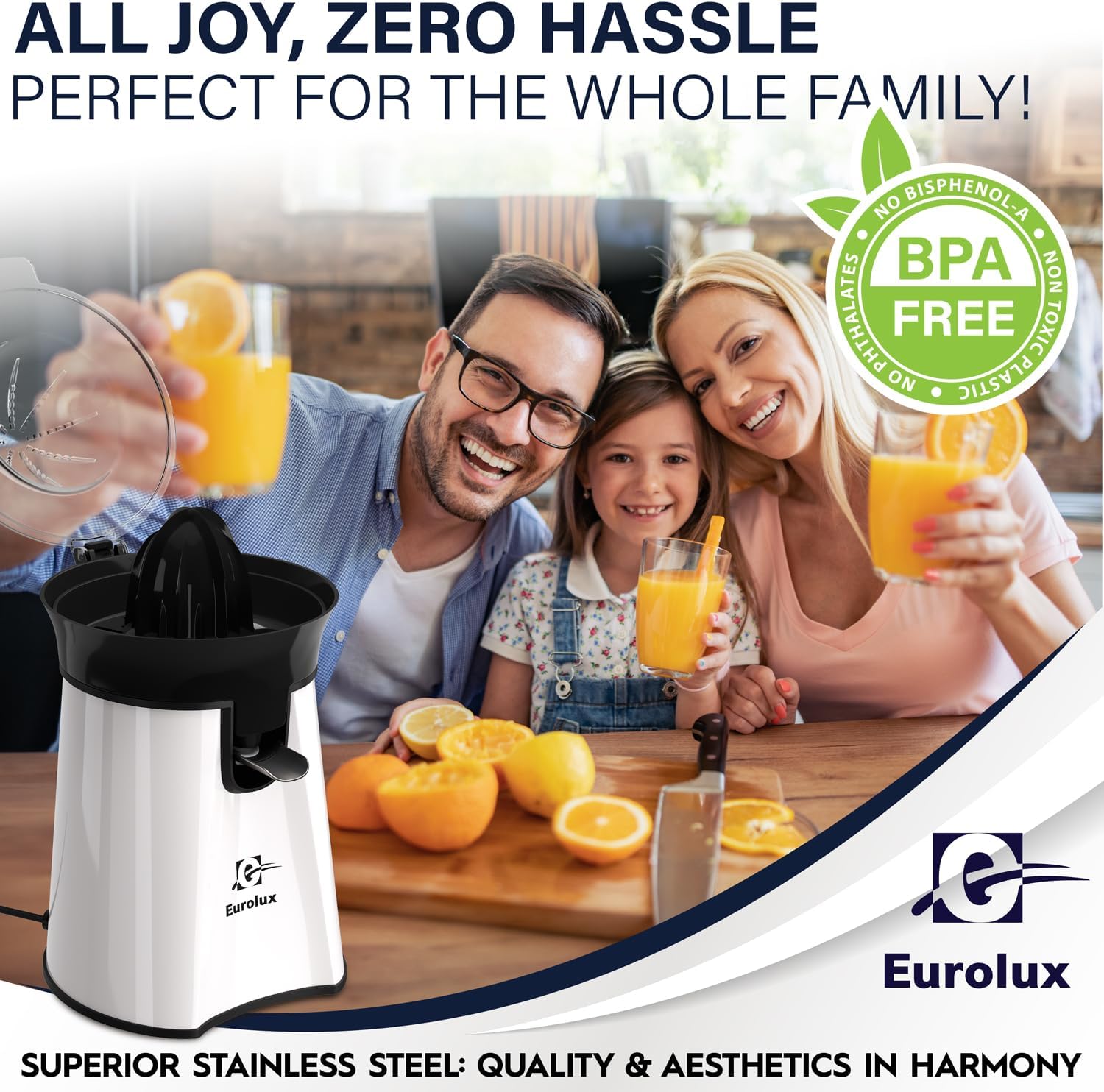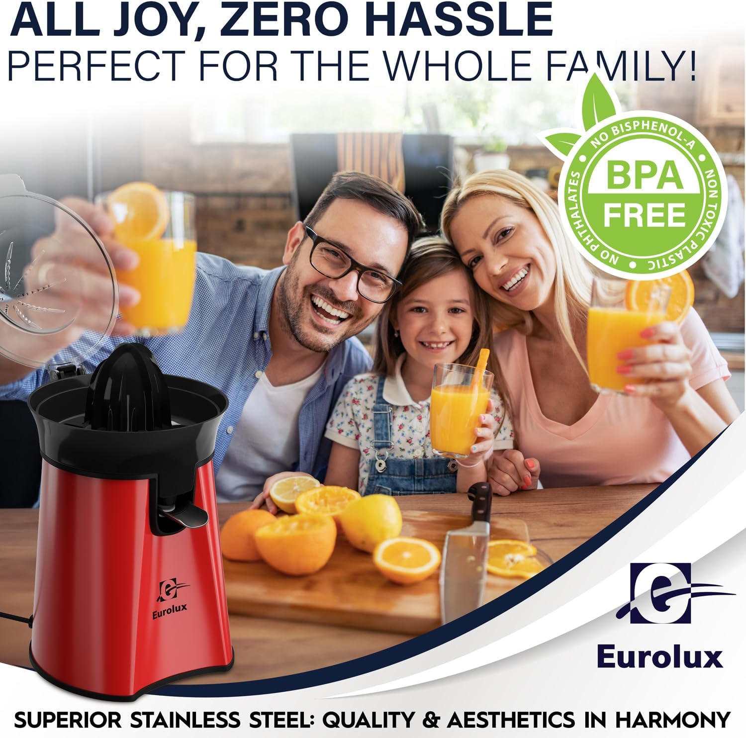 • EUROLUX TRUST — It is backed by Eurolux, a brand with over 30 years of excellence in home appliances so you can invest with confidence in a citrus juicer machine that's synonymous with durability and reliability, which means you're joining thousands of satisfied customers enjoying Eurolux's quality commitment.
