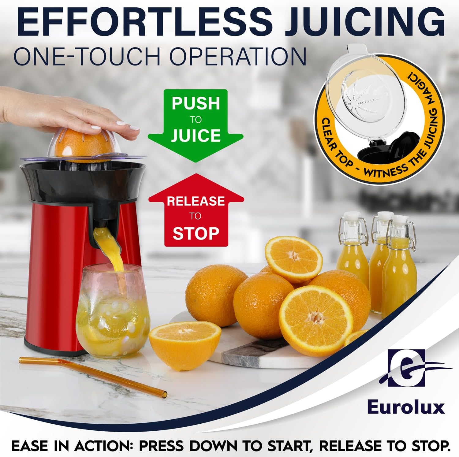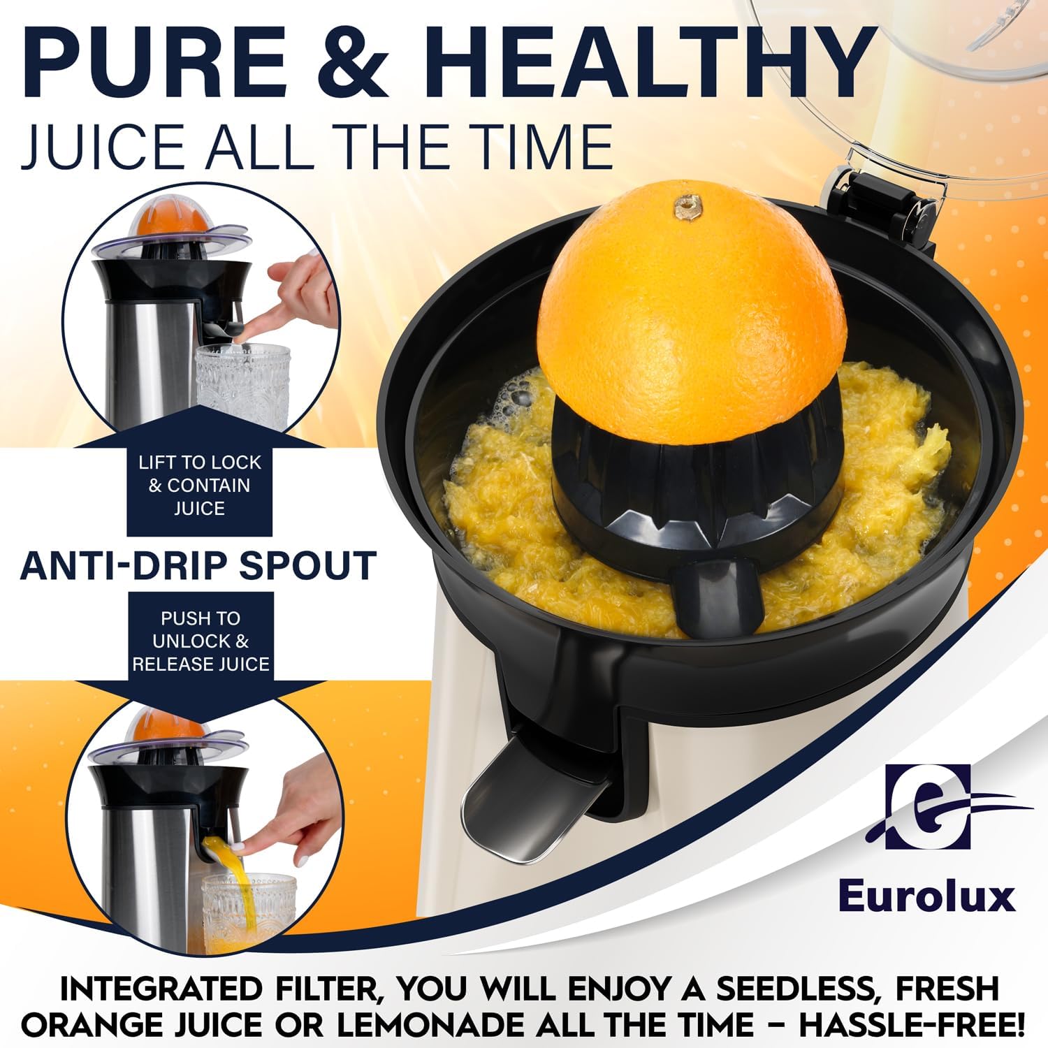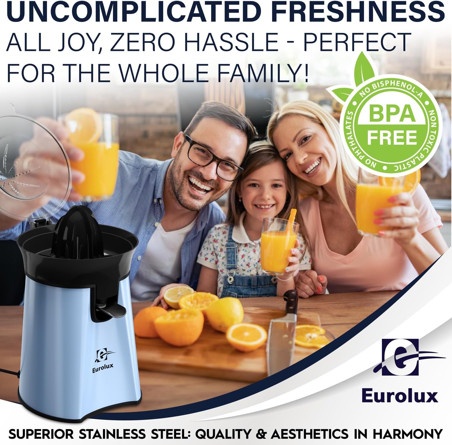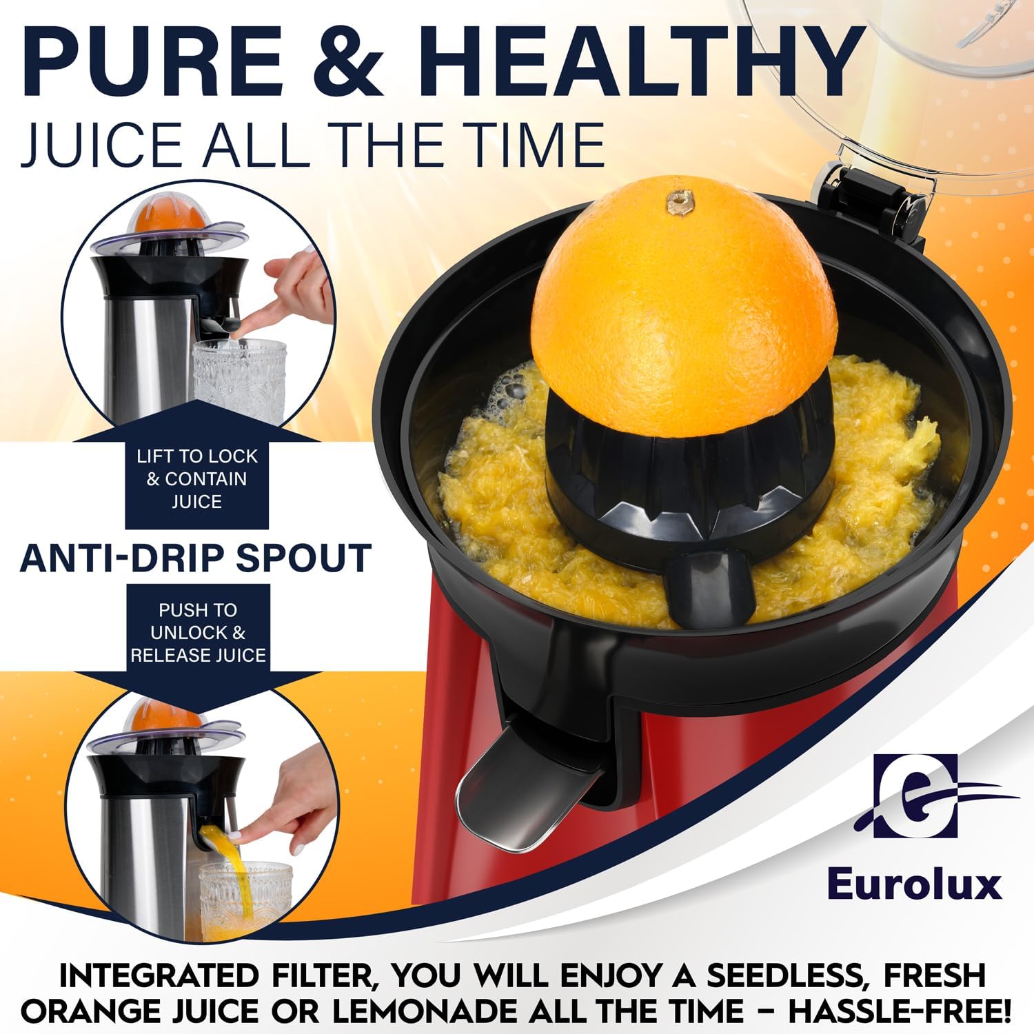• EUROLUX TRUST — It is backed by Eurolux, a brand with over 30 years of excellence in home appliances so you can invest with confidence in a citrus juicer machine that's synonymous with durability and reliability, which means you're joining thousands of satisfied customers enjoying Eurolux's quality commitment.