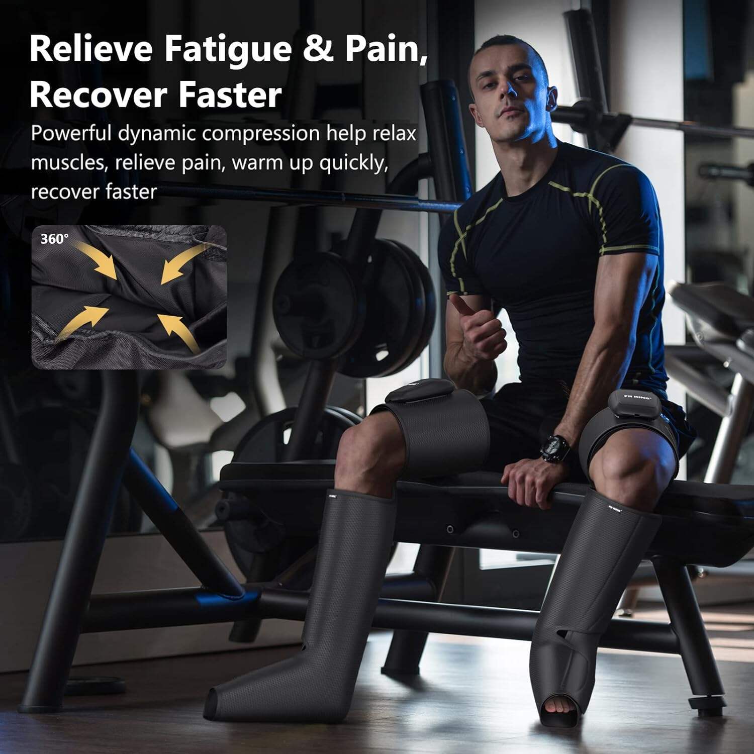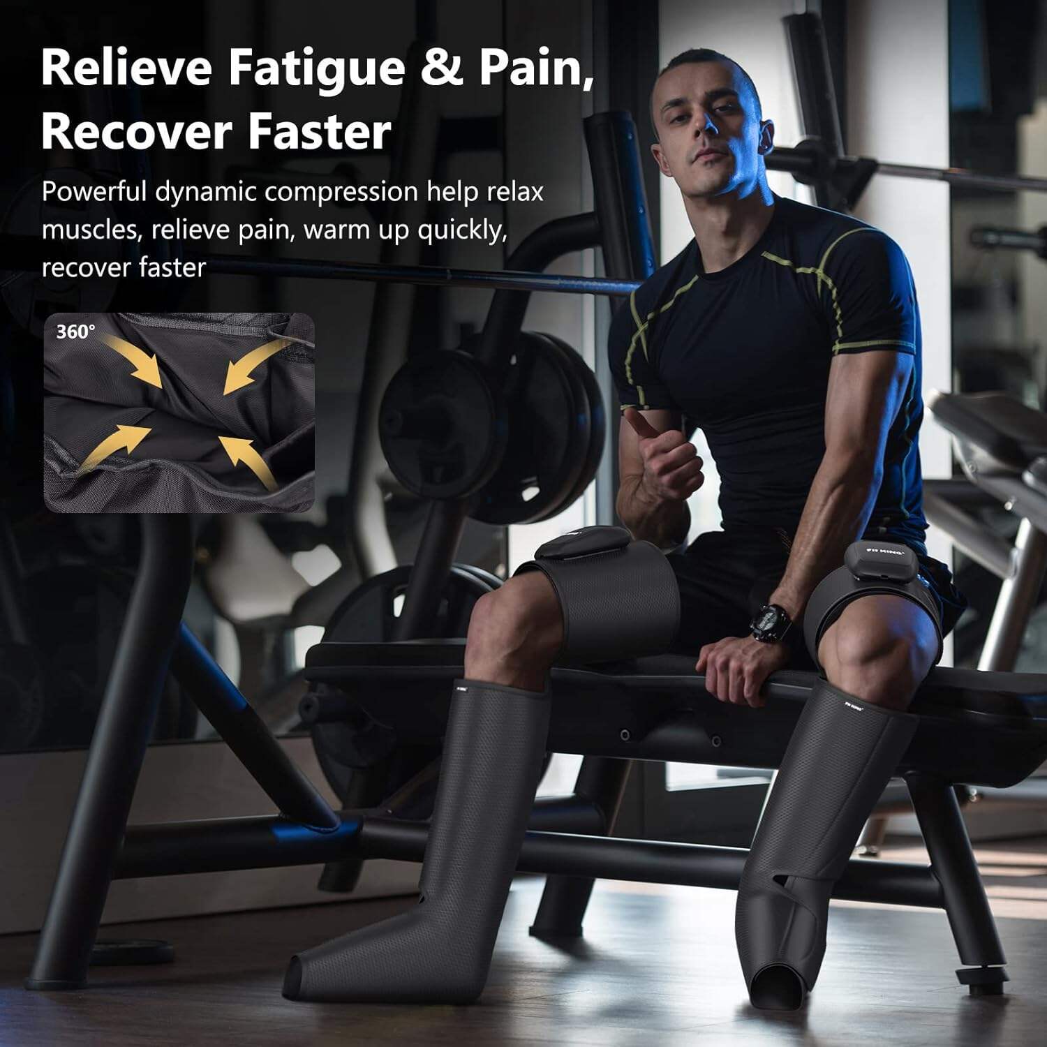 - Full Leg Circulation Promotion- This full leg compression massager for circulation is an air compression therapy device, can massage your feet, calf and thigh, prevent clots and keep blood flowing, relax muscles , reduce stiffness and soreness, soothing relieve for pain, effectively promote the circulation, it also helps to stimulate the tissue repair, speed up recovery and perform better.