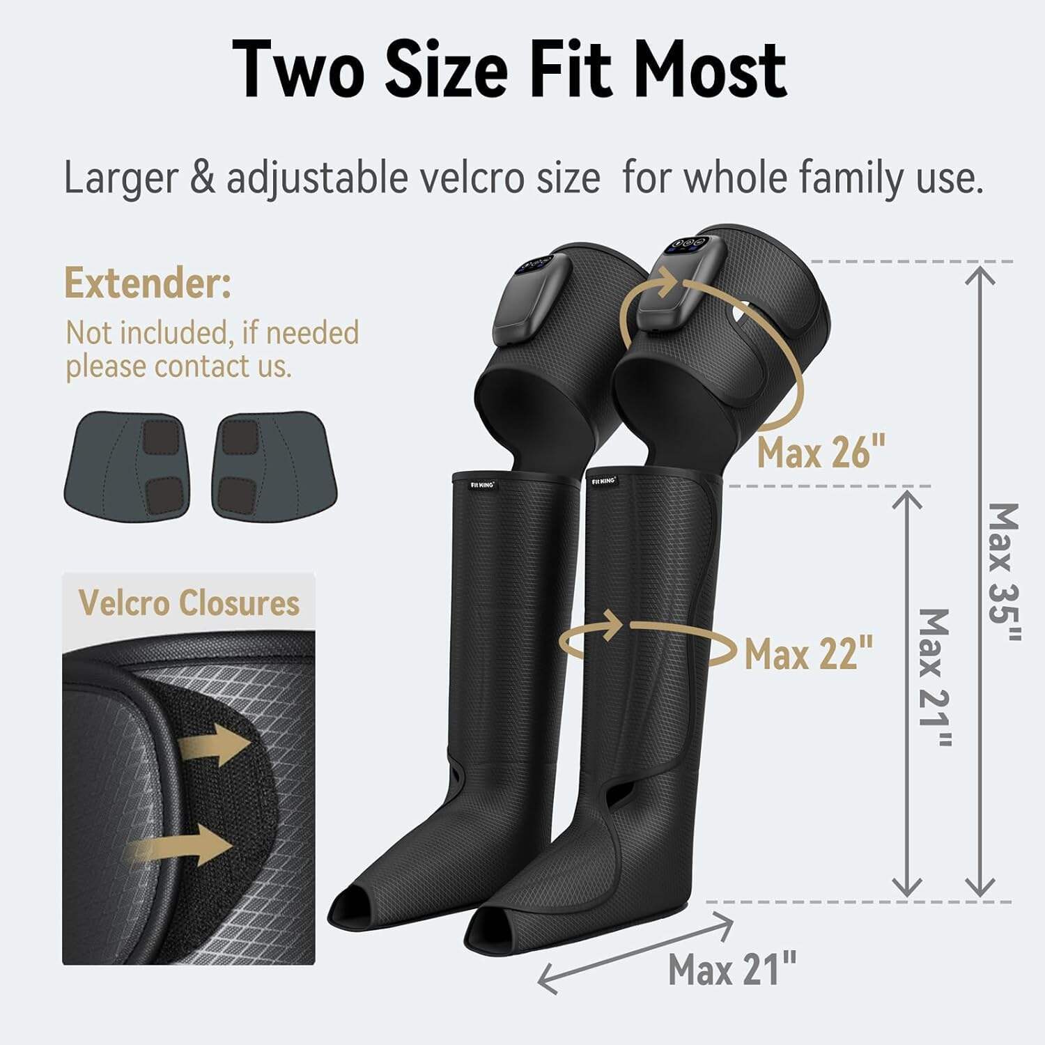 - Easy to Use & Adjustable Size - The UPGRADED leg blood circulation machine are with Velcro closures, no external air hoses, much easier to put it on and off, adjust size and operate. You can share one or both of them with the whole family. It would be an excellent gift for people.