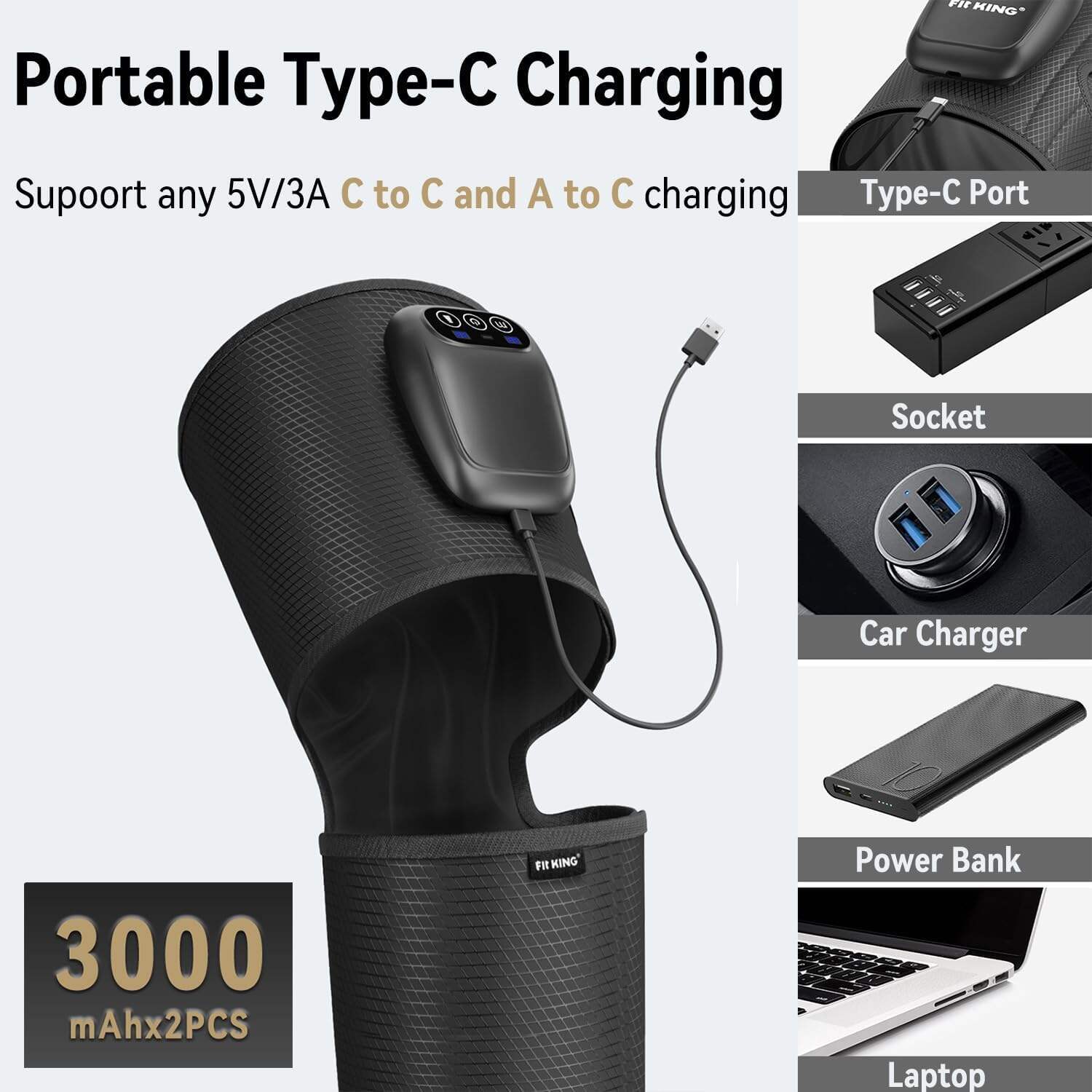 - Anytime Anywhere Massage- The RECHARGEABLE leg air pressure massager are powered by 2 High-capacity batteries, which can last max 4 hours of using, you can relax at any time in the office, gym or during travel. And it can be charged with any USB device and portable charger. If it is used for 20 to 30 minutes per day as recommended, it can be used for more than 10 days on a single charge.