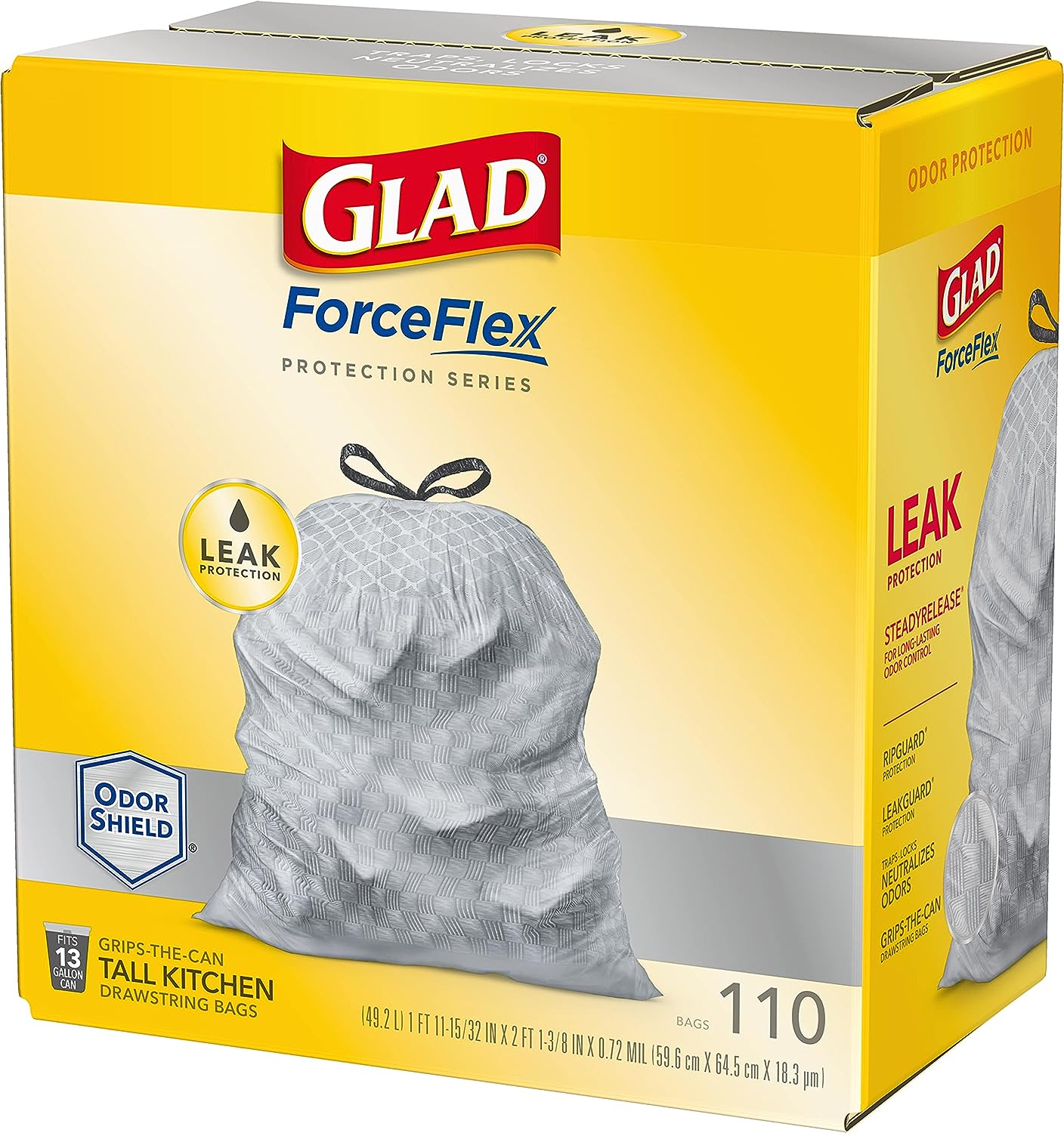 - FORCEFLEX TECHNOLOGY: Glad’s patented dual-layer protection is designed to give extra flex as it expands around sharp edges and heavy loads while resisting punctures, rips and tears