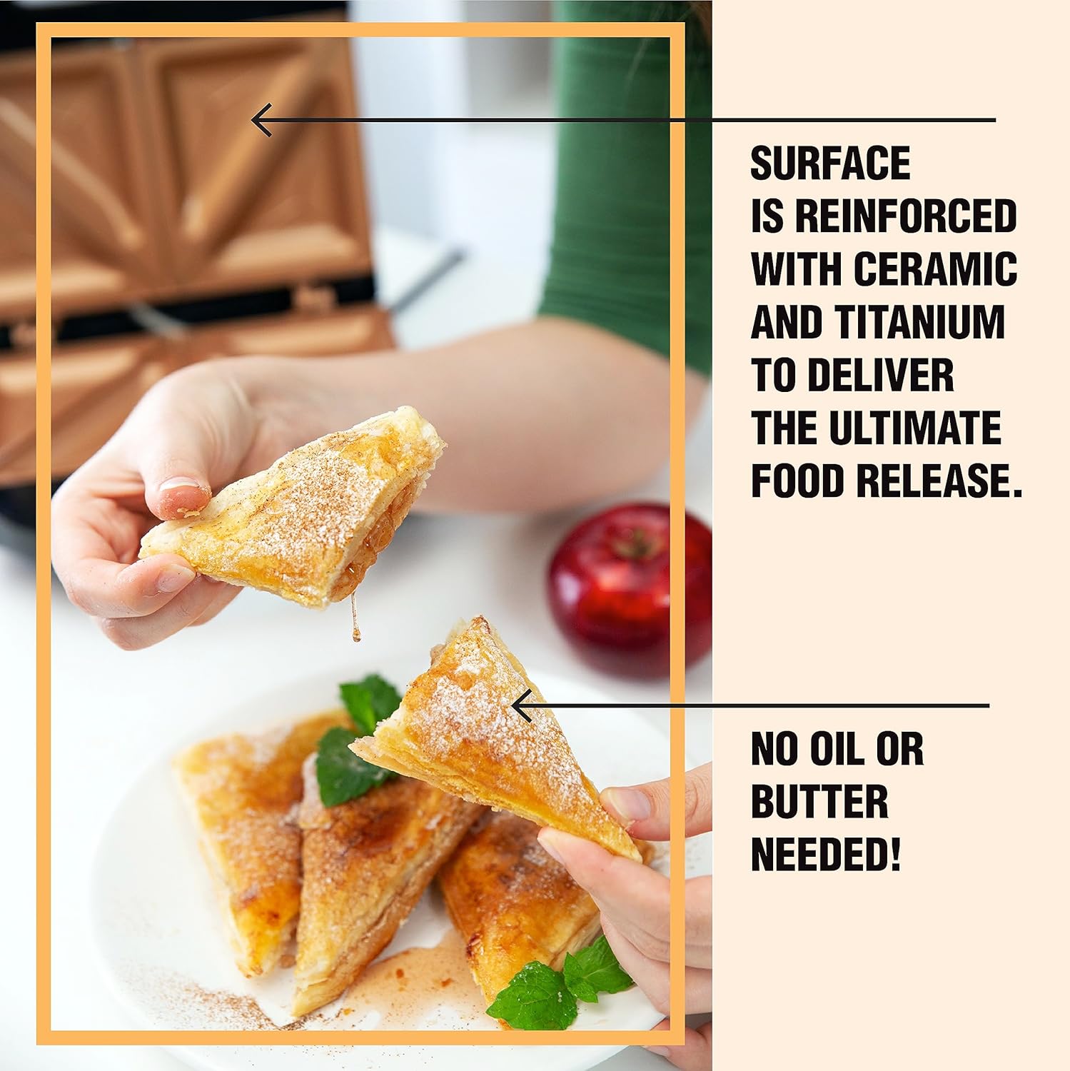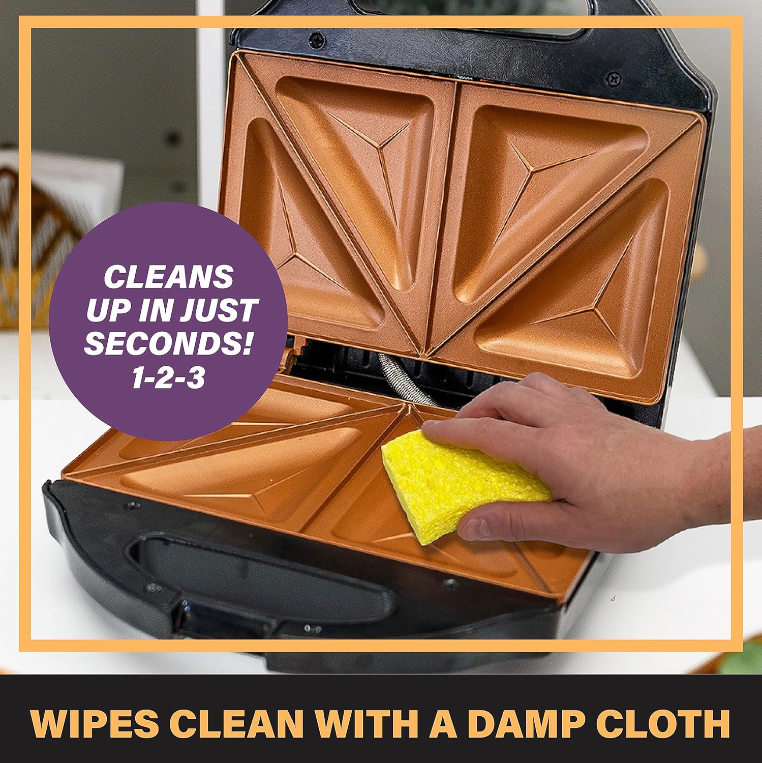 - Easy To Use: The Gotham Steel sandwich maker is designed for easy use for all ages and makes four perfectly toasted pocket sandwiches in less than 5 minutes, start to finish.