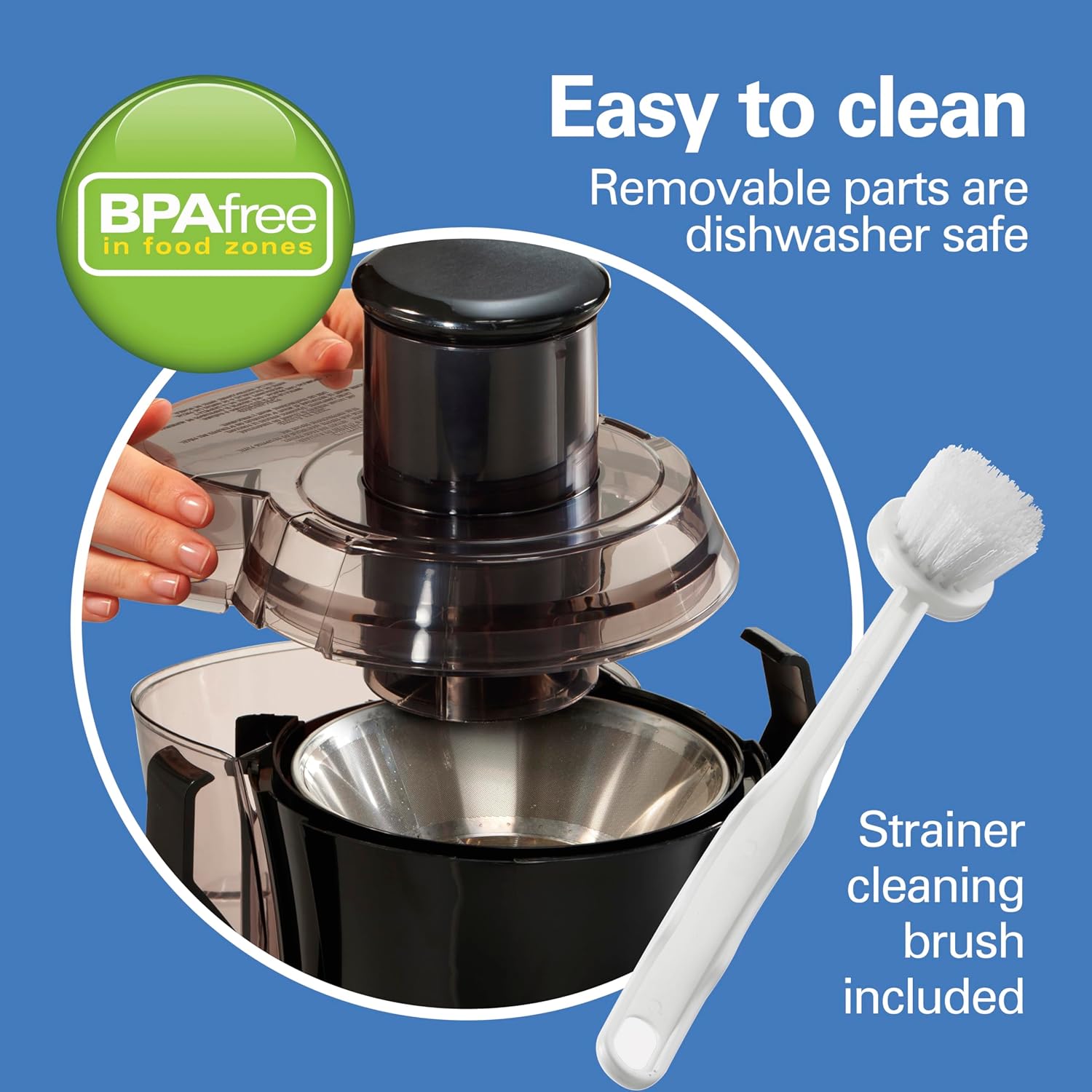 - INCLUDES A 3 YEAR LIMITED WARRANTY: This durable fruit and juice machine is backed by Hamilton Beach, America's best-selling juice extractor brand, with a 3 year limited warranty.