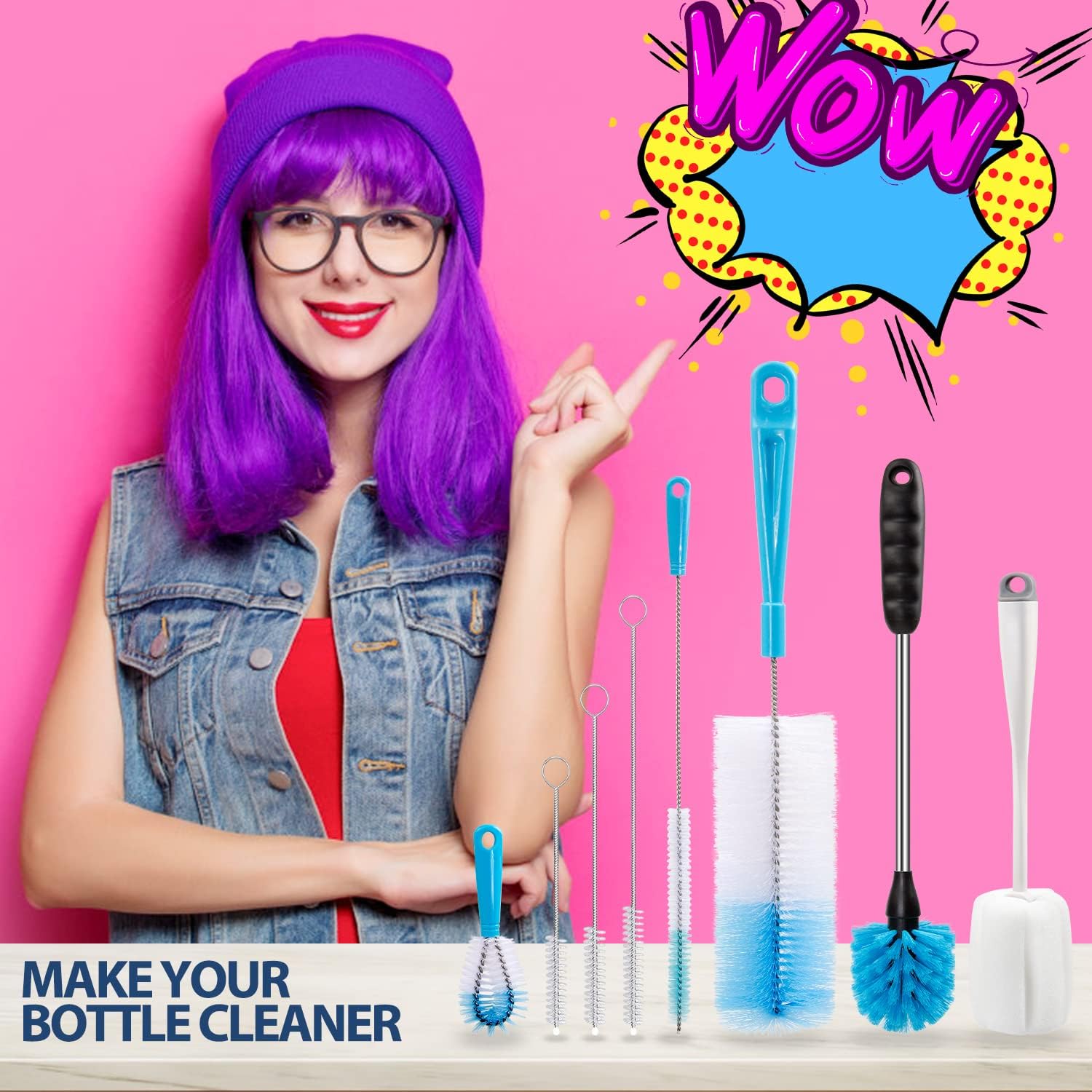 • 🔶8 Pack Bottle Cleaning Brushes, multiple uses, including 15" long handle beer bottle brush, 14" sports water bottle brush, 10" multifunction sponge brush, 4.3" spout cleaning brush, 7.9-12.5" straw brushes. You can hang them on hook for drying and storage.