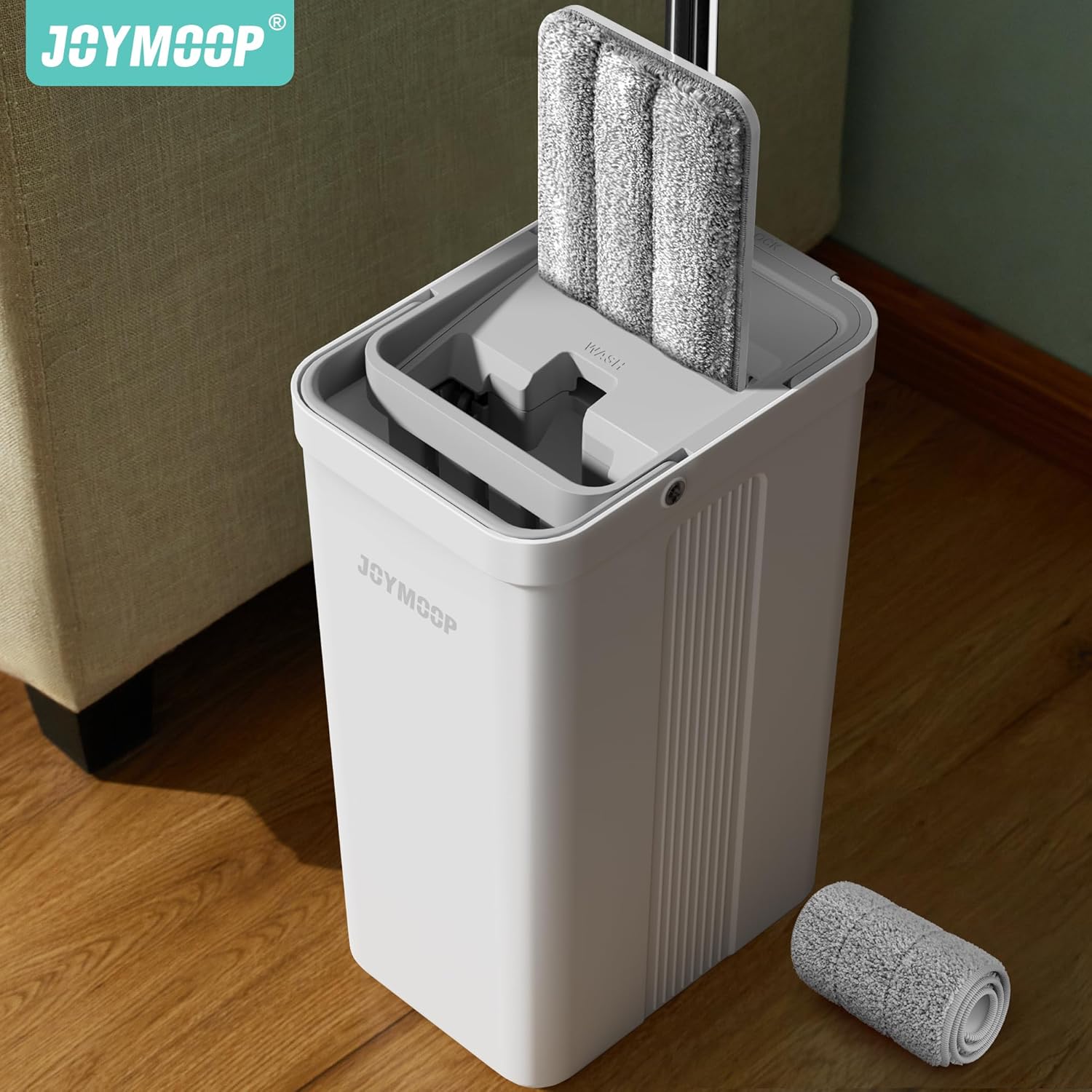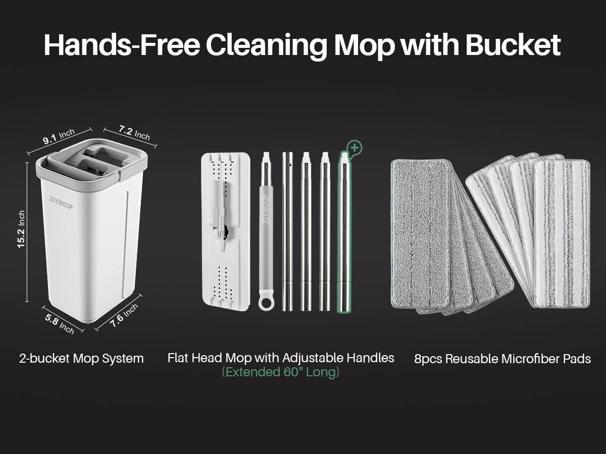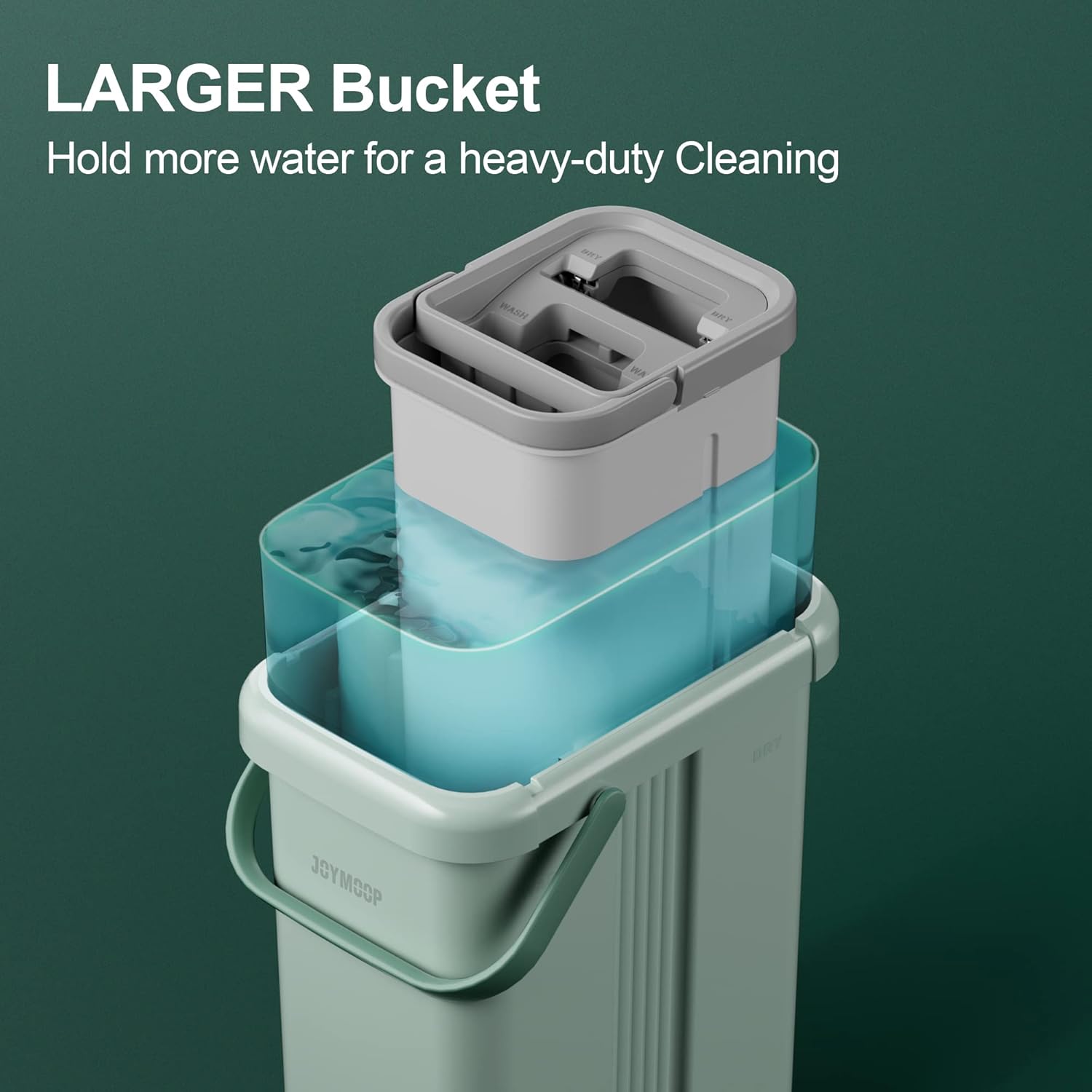 - [2-Tank Wash&Dry] JOYMOOP mop and bucket with wringer set, 2-bucket mop system, WASH and DRY, scratch dirt away in WASH chamber, squeeze out of water in DRY chamber, hands-free cleaning mop with bucket. NOTE:PLEASE WET MOP to avoid hard-insert Problem.