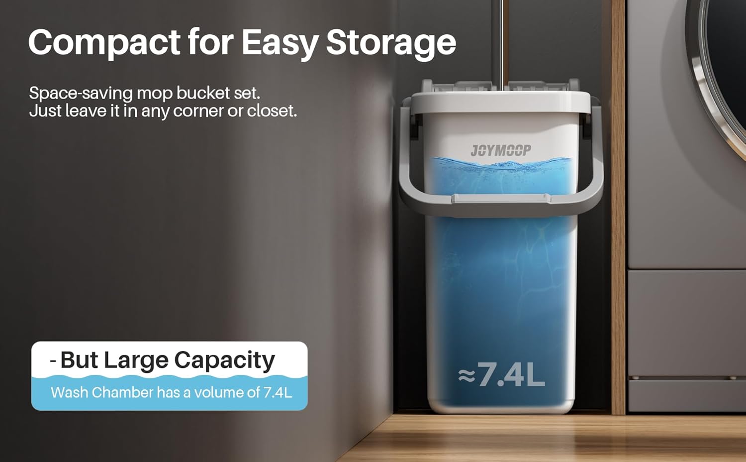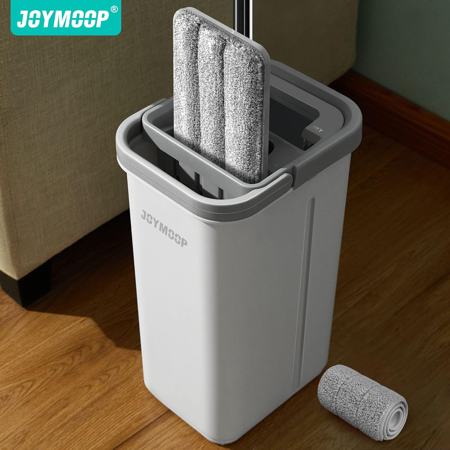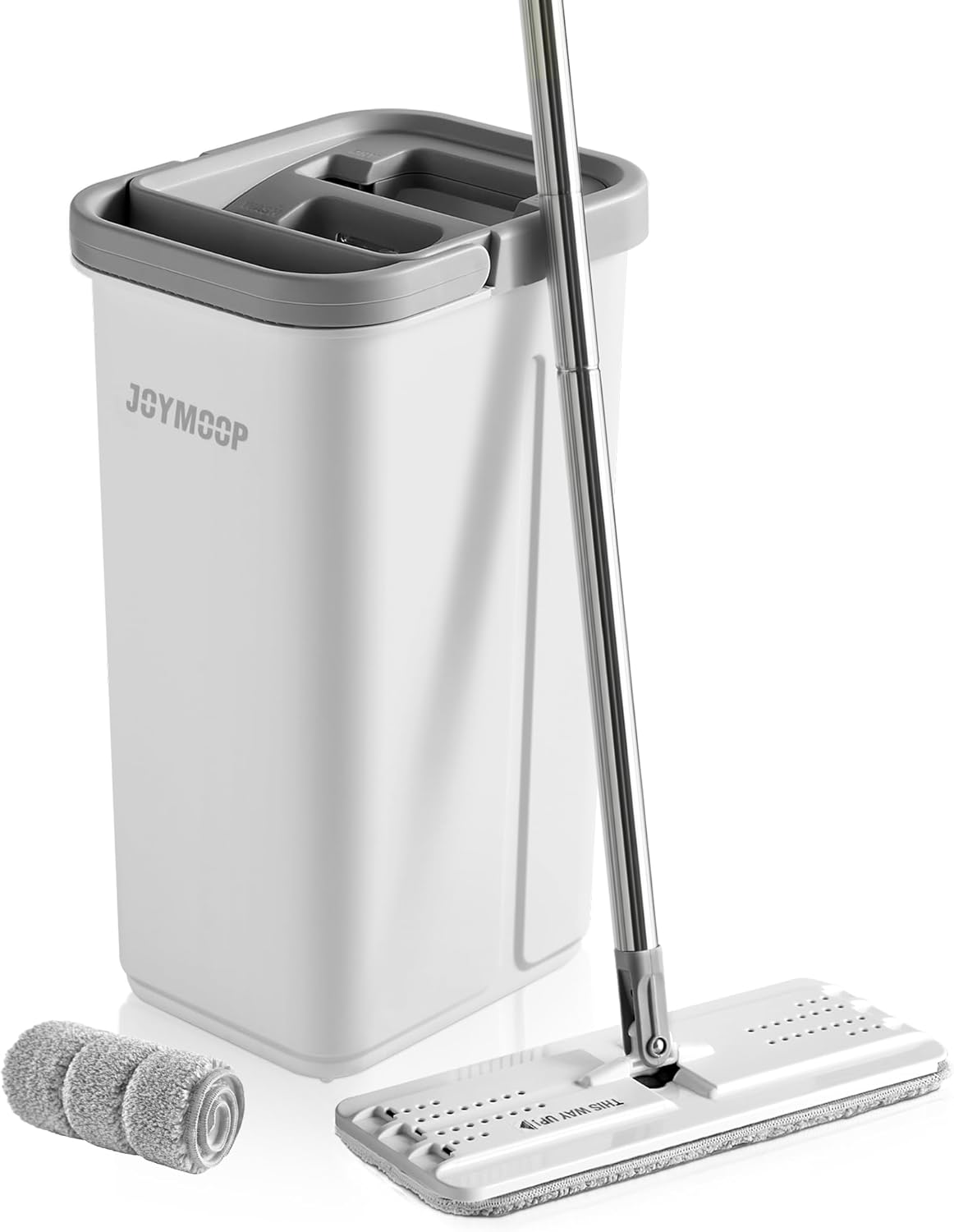 - [2-Tank Wash&Dry] JOYMOOP mop and bucket with wringer set, 2-bucket mop system, WASH and DRY, scratch dirt away in WASH chamber, squeeze out of water in DRY chamber, hands-free cleaning mop with bucket. NOTE:PLEASE WET MOP to avoid hard-insert Problem.