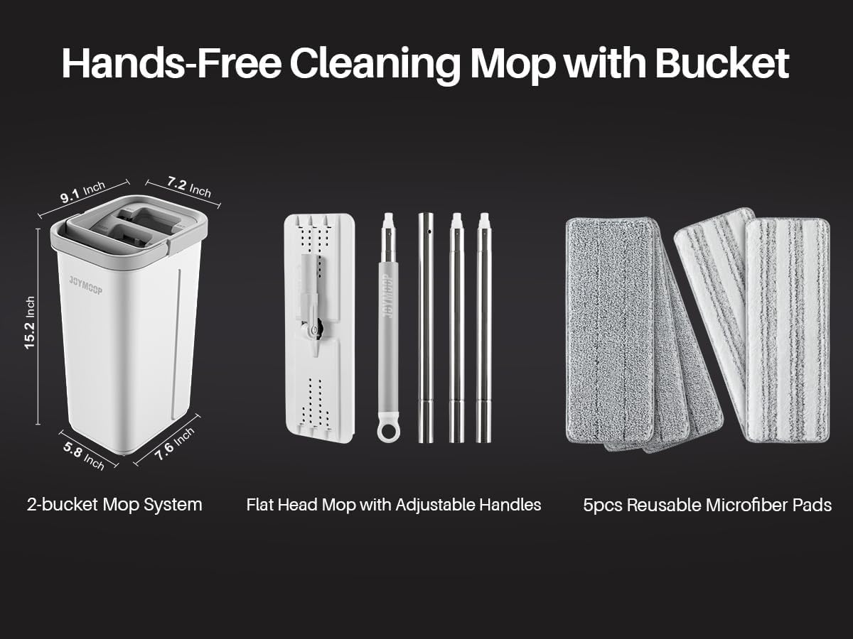 - [MOP BUCKET SET] Flat Squeeze Mop Bucket Set. Self cleaning mop, SAVE your time and labor, let the bucket do more than by yourself, mopping is just between mop and bucket, be free from dirty water, All you need to do is inserting and pulling the mop.